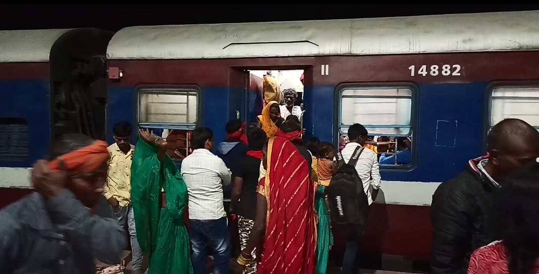 ट्रेनों की कमी से आखरी ट्रेन में काफी भीड़