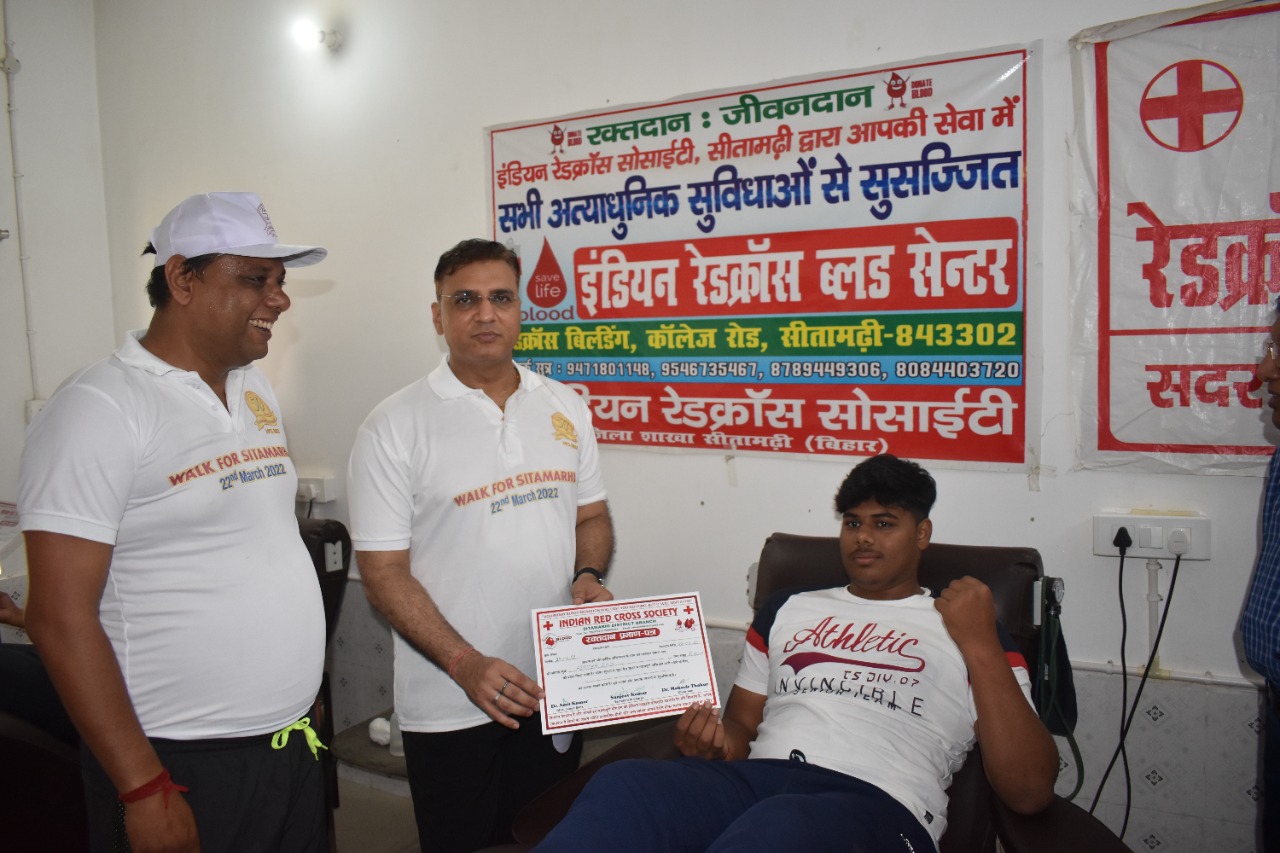 बिहार दिवस के अवसर पर रेडक्रॉस भवन सीतामढ़ी में ब्लड डोनेशन कैम्प का आयोजन किया गया। जिलाधिकारी सुनील कुमार यादव एवं पुलिस अधीक्षक हरकिशोर राय ने ब्लड डोनेशन कैम्प में पहुँचकर रातदाताओ का हौसला अफजाई किया,वही उन्हें प्रशस्ति पत्र भी दिया।इस खबर को सुनने के लिए ऑडियो पर क्लिक करें।
