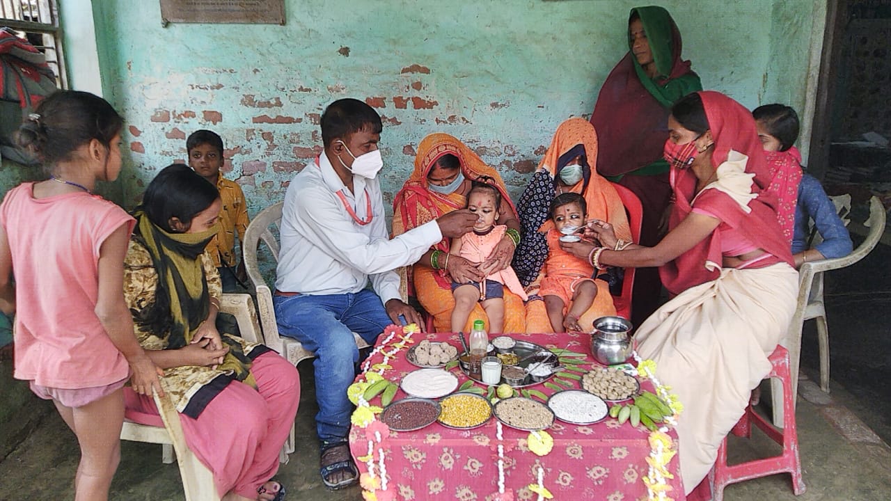 आंगनबाड़ी केंद्र पर अन्नप्राशन दिवस का आयोजन सीतामढी:- जिले के परिहार प्रखंड के विष्णुपुर गांव स्थित आंगनबाड़ी केंद्र पर सोमवार को अन्नप्राशन दिवस का आयोजन किया गया। इस अवसर पर 6 माह पूरा कर चुके बच्चों को खीर एवं हलवा खिला कर ऊपरी आहार की शुरुआत की गई। सेविका नूतन भारती ने बताया कि मां का दूध बच्चों के लिए अमृत के समान होता है। छह माह तक बच्चों को केवल मां दुध पिलाना चाहिए। 6 माह पूरा होते ही बच्चों को ऊपरी आहार देना आरंभ कर देना चाहिए। इससे बच्चों का शारीरिक एवं मानसिक विकास होता है। पिरामल स्वास्थ्य के बीटीओ सुधीर कुमार राय ने बच्चों के संपूर्ण देखभाल के विषय में जानकारी दी। राय ने बच्चों का समय पर टीकाकरण कराने की अपील करते हुए बताया कि टीकाकरण भविष्य में बच्चों को कई घातक एवं गंभीर बीमारियों से बचाव करता है। मौके पर आशा कुमारी, अनिता, सहायिका ललिता देवी, ग्रामीण समता देवी, सुन्दर देवी, ज्योति कुमारी एवं दिव्या भारती सहित कई अन्य लोग मौजूद थे।