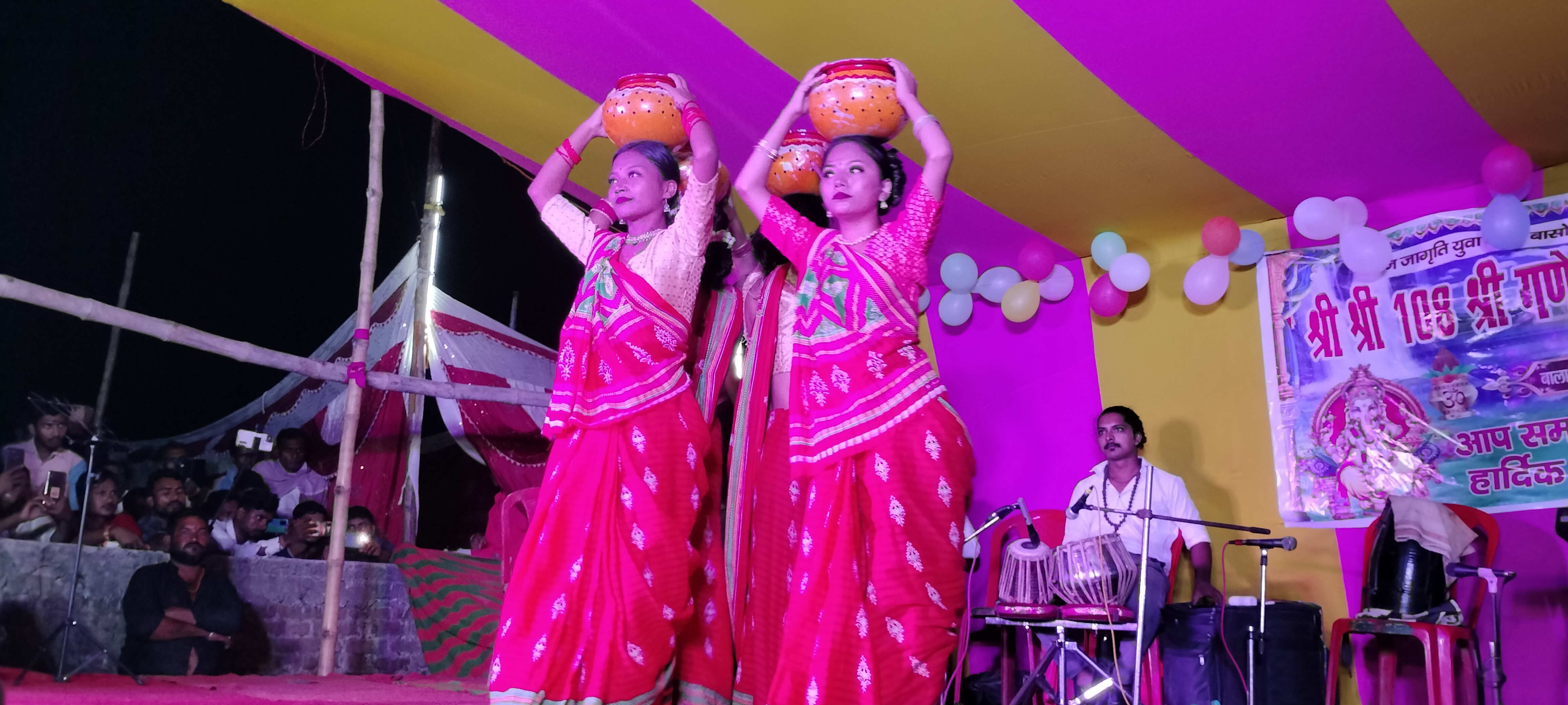 मधुबनी जिले के बासोपट्टी प्रखंड में गणेश पूजा के शुभ अवसर पर नित्य कला एक पर एक कलाकारों ने अपना जलवा दिखाकर ग्रामीणों को किया मनमोहन