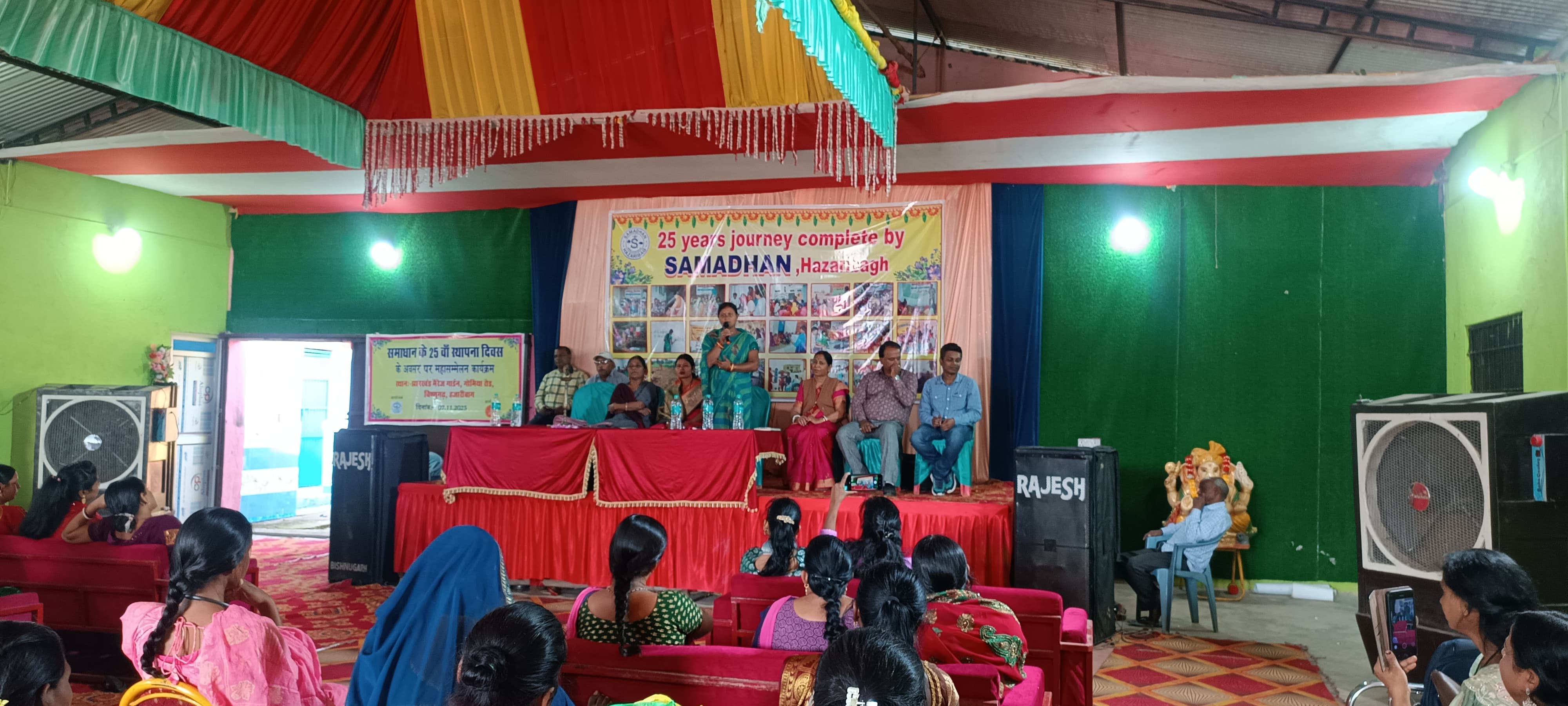 विष्णुगढ़ प्रखंड के झारखंड मैरिज हॉल में अर्ध सरकारी संगठन समाधान कर्मियों के द्वारा 25वीं वर्षगांठ बड़ी ही धूमधाम से मनाई गई इस अवसर समाधान संस्थान के कार्यों के बारे में क्षेत्र में बाल विवाह बाल शोषण बाल श्रम मानव तस्करी लिंग भेदभाव महिलाओं को आर्थिक सशक्त बनाने में घरेलू हिंसा रोकथाम अन्य सामाजिक कुरीतियों को नियंत्रित करने को लेकर महत्वपूर्ण जानकारी क्षेत्र में दे रहे हैं कार्यक्रम को सफल बनाने में संस्था के सचिव हिल्डा पिंटो संजीव भट्टाचार्य राहुल कुमार शीतल रीना बर्मन उप मुखिया चेहरा पंचायत रश्मि लता नीतू कुमारी प्रभा कुमारी राजेंद्र साव पूर्व जिला परिषद सदस्य मध्य यशोदा देवी समेत बड़ी संख्या में लोग मौजूद थे।