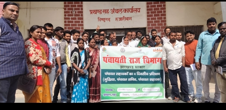 विष्णुगढ़ प्रखंड मुख्यालय सभागार में पंचायती राज विभाग के द्वारा पंचायत सहायक मुखिया पंचायत सचिव को चार दिवसीय प्रशिक्षण संपन्न हो गया जिसे सभी पंचायत को सुदृढ़ीकरण डिजिटल पंचायत के अनुरूप केंद्र सरकार राज्य सरकार के द्वारा चलाए जा रहे हैं कल्याणकारी योजनाओं के बारे में अत्यंत गरीब वर्ग के लोगों को जागरुक करते हुए उन्हें लाभान्वित करने पर बल दिया गया प्रशिक्षण में स्वाति सिंह मुखिया उत्तम महतो चेतलाल महतो चंद्रशेखर महतो पंचायत सहायक उर्मिला कुमारी गीता देवी हेमंती देवी समेत बड़ी संख्या में पंचायत सहायक मौजूद रहे सफल प्रशिक्षण के दौरान मुखिया पंचायत सहायकों को राष्ट्रीय ग्राम स्वराज अभियान के तहत प्रमाण पत्र वितरण किया गया।