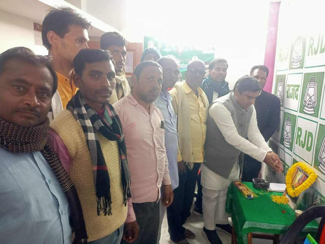 राजद पंचायत अध्यक्ष के निधन पर पटोरी में विधायक ने किया श्रद्धांजलि सभा का आयोजन. जानकारी के अनुसार समस्तीपुर जिला के पटोरी प्रखंड क्षेत्र के जोरपुरा पंचायत के पंचायत राजद अध्यक्ष शिवनाथ साह का विगत कुछ दिन पहले निधन हो गया था. जिसको लेकर आज सोमवार को स्थानीय मोरवा विधायक रणविजय साहू ने पटोरी राजद नगर परिषद कार्यालय श्रद्धांजलि सभा का आयोजन किया. इस मौके पर दर्जनों की संख्या में राजा कार्यकर्ता मौजूद थे। ज़्यादा जानकारी के लिए इस ऑडियो को क्लिक करें।