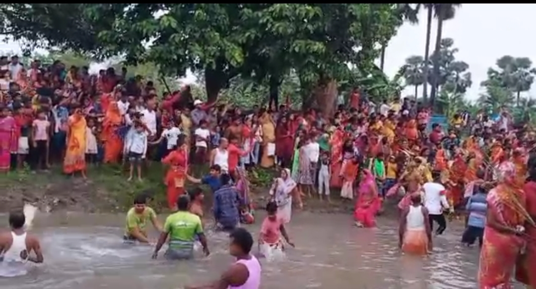 शारदीय नवरात्रि समापन उपरांत चकसाहो वाया नदी पर कलश विसर्जन को लेकर उमड़ी लोगों की भीड़। प्राप्त जानकारी के अनुसार समस्तीपुर जिले के पटोरी अनुमंडल क्षेत्र में मां दुर्गा को समर्पित नवरात्र हिंदू धर्म में काफी धूमधाम से मनाया गया है। नौ दिनों तक चलने वाले इस महापर्व में मां दुर्गा के नौ स्वरूपों की विधिवत पूजा की गई है। विस्तार पूर्वक जानकारी के लिए क्लिक करें ऑडियो पर और सुनें पूरी खबर।