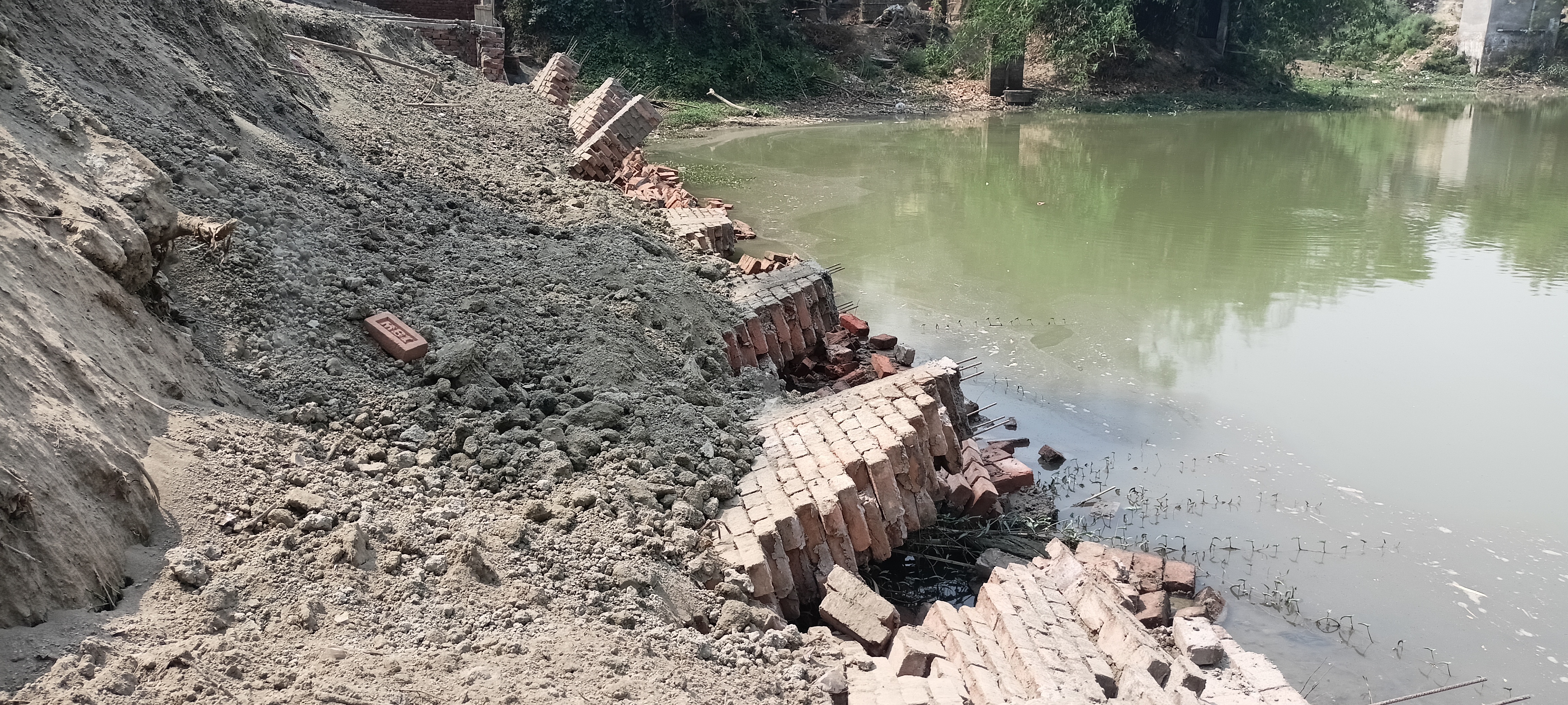 विद्यापतिनगर प्रखंड क्षेत्र के बढ़ौना पंचायत के वार्ड 5 के पोखर में बनी अनियमितता की भेंट चढ़ी सुरक्षा दीवार पंचायत में मनरेगा योजना से बनी सुरक्षा दीवार धराशाही हो गई। लाखों रुपये की लागत से बनी सुरक्षा दीवार ढहने से खतरा पैदा हो गया है। वहीं पोखर में मलबा भरने से लोगों को काफी परेशानी झेलनी पड़ी। एक सप्ताह पूर्व सुरक्षा दीवार मिट्टी भराई से हुए भूस्खलन के कारण धराशाही हो गई। पोखर में भूस्खलन के खतरे से बचने को बनी सुरक्षा दीवार ढहने से ग्रामीण चिंतित हैं। वहीं ग्रामीणों का कहना हैं कि सुरक्षा दीवार निर्माण में अनियमितता की गई थी जिसकी बजह से दीवार धराशाही हो गया। लेकिन अभी तक कोई विभागीय अधिकारी जांच तक करने नहीं आई हैं। इससे यह पता चलता हैं कि प्रतिनिधि, अधिकारी सब योजना में लूट खसोट कर योजना की राशि का गवन किया हैं।खबर को पूरा सुनने के लिए ऑडियो के लिंक को क्लिक करें।