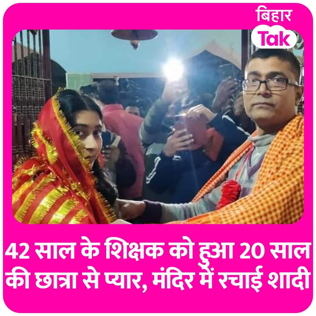 समस्तीपुर में 50 साल के एक टीचर ने 20 साल की अपनी ही छात्रा से शादी रचा ली जिसके बाद लोगों को जूली-मटुकनाथ की लव स्टोरी याद आ गई. 2006 में बिहार की राजधानी पटना में जूली-मुटकनाथ की लव स्टोरी ने खूब हंगामा बरपाया था और अब इस टीचर की शादी सुर्खियों में हैं. समस्तीपुर मुख्यालय से करीब 30 किलोमीटर दूर रोसड़ा में संगीत कुमार नाम के इंग्लिश टीचर ने 20 साल की छात्रा से शादी कर ली है. 50 साल के संगीत कुमार आधी उम्र से भी कम अपनी छात्रा श्वेता कुमारी को दिल दे बैठे थे. दोनों के बीच प्यार ऐसा परवान चढ़ा की मंदिर में जाकर शादी रचा ली. कुछ ऐसा ही मामला पटना विश्वविद्यालय में भी देखने को मिला था जब साल 2006 में प्रोफेसर मटुकनाथ को अपनी छात्रा जूली से प्यार हो गया था और वो उसी के साथ रहने लगे थे.जब इस बात की भनक उनकी पत्नी को लगी तो वो अपने बेटे के साथ जूली और मटुकनाथ के ठिकाने पर पहुंच गई थी जहां जमकर झगड़ा हुआ था. पत्नी और लोगों ने मटुकनाथ के चेहरे पर कालिख पोत दी थी। विस्तृत जानकारी के लिए ऑडियो पर क्लिक करें।