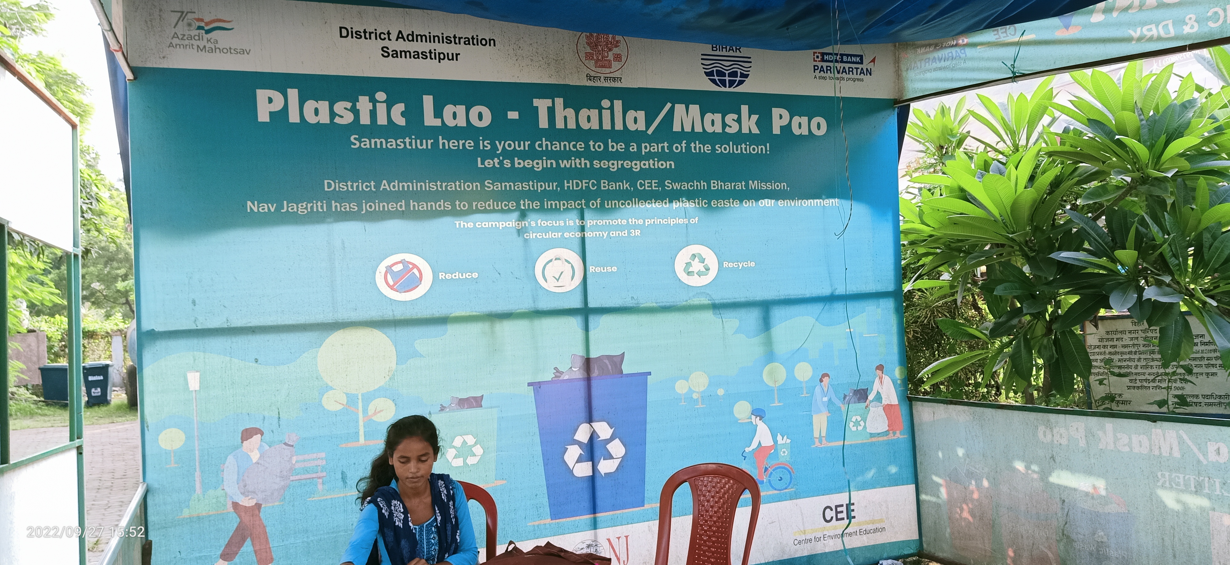 समस्तीपुर जिला प्रशासन एचडीएफसी परिवर्तन और सेंटर फॉर एनवायरमेंट एजुकेशन एवं नव जागृति के संयुक्त पहल से समस्तीपुर जिले में प्लास्टिक के बदले थैला या मास्क की अनोखी पहल शुरू हो गई है आप श्रोतागण किसी भी समय नगर भवन के परिसर में आकर प्लास्टिक का बोतल जमा कर थैला या मास्क ले सकते हैं पूरी जानकारी सुनने के लिए मोबाइल वाणी के टोल फ्री नंबर 92666 52333 पर कॉल करें या लिंक को अभी क्लिक करें।