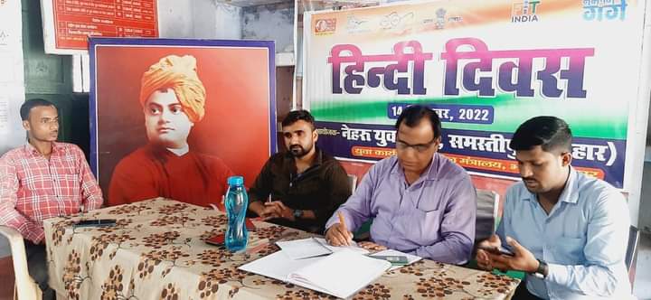 नेहरू युवा केंद्र समस्तीपुर (बिहार) युवा कार्यक्रम खेल मंत्रालय भारत सरकार के द्वारा दिवस हिंदी दिवस कार्यक्रम का आयोजन किया गया। इस कार्यक्रम में मुख्य अतिथि के रूप में जिला युवा अधिकारी अमित सर एवं विशिष्ट अतिथि के रूप मे लेखापाल केदार सर एव इस कार्यक्रम की अध्यक्षता नमामि गंगे परियोजना समस्तीपुर के अधिकारी नीरजेश कुमार के द्वारा किया गया! इस कार्यक्रम में समस्तीपुर जिला के सभी प्रखंड से आए हुए राष्ट्रीय युवा स्वयंसेवक उपस्थित थे! इस कार्यक्रम में सभी लोगों ने हिंदी दिवस के शुभ अवसर पर अपना अपना विचार प्रकट किए! उसके बाद नीरजेश के द्वारा पोषण माह को लेकर शपथ दिलाया गया!विस्तृत जानकारी के लिए ऑडियो पर क्लिक करें।