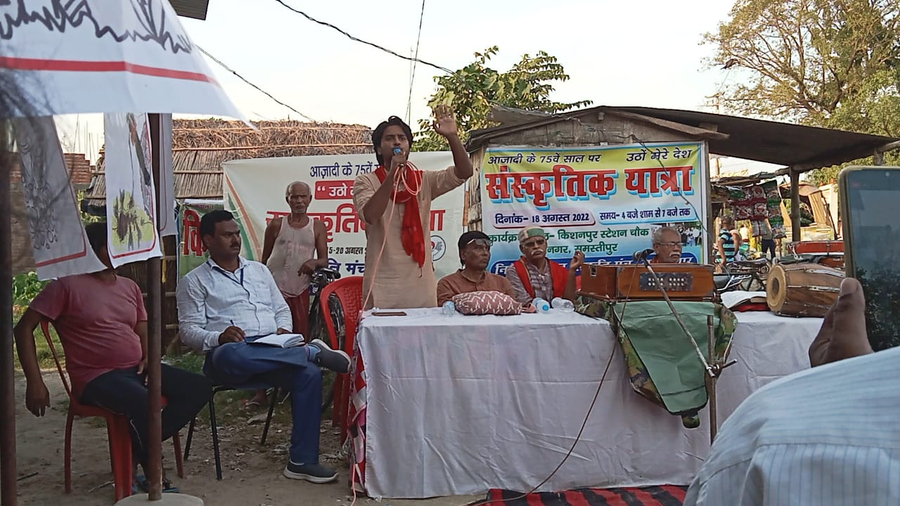 जन संस्कृति मंच के जत्थे का गुरूवार को देर शाम किशनपुर स्टेशन चौक पहुंचने पर जिला अध्यक्ष जयप्रकाश भगत के नेतृत्व में भव्य स्वागत किया गया. राज्य स्तरीय सांस्कृतिक जत्था देर शाम को समस्तीपुर जिला के विभिन्न प्रखंडों का यात्रा करते हुए किशनपुर चौक पर पहुंचा. विस्तार पूर्वक जानकारी के लिए क्लिक करें ऑडियो पर और सुनें पूरी खबर।