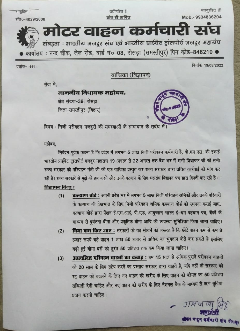 विधानसभा क्षेत्र संख्या 39 रोसरा जिला समस्तीपुर के माननीय विधायक श्री वीरेंद्र पासवान जी के नाम याचिका विज्ञापन सौंपा गया।विस्तार पूर्वक जानकारी के लिए क्लिक करें ऑडियो पर और सुनें पूरी खबर।