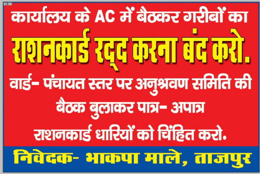 प्रखण्ड के गरीबों का बड़ी संख्या में राशनकार्ड रद्द करने समेत जिले में करीब ढ़ाई लाख राशनकार्ड रद्द किये जाने पर प्रतिक्रिया व्यक्त करते हुए भाकपा माले प्रखण्ड सचिव सुरेंद्र प्रसाद सिंह ने कहा कि पंचायत स्तर पर अनुश्रवण की बैठक कर पात्र- अपात्र राशनकार्ड को चिंहित किया जाना चाहिए. इस मांग को लेकर भाकपा माले ने शनिवार से जन अभियान शुरू किया है. इसे बारिकी से जांच- पड़ताल कर रद्द राशनकार्ड पुनः बहाल करने एवं बगैर जांच के राशनकार्ड रद्द करने पर रोक लगाने की मांग को लेकर भाकपा माले के बैनर तले 1 जून से अंचल- प्रखण्ड पर घेरा डालो- डेरा डालो आंदोलन को बड़ी भागीदारी दिलाकर सफल बनाने की अपील राशनकार्ड धारियों से की है.