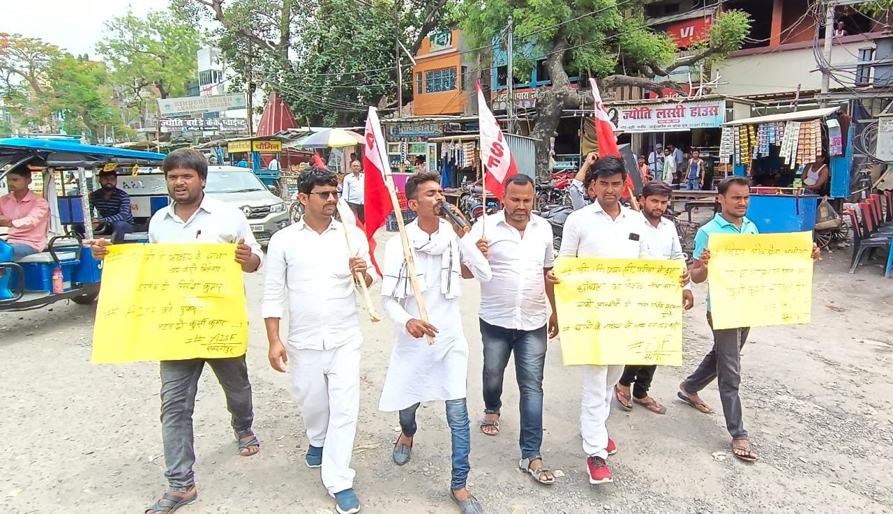 मोहिउद्दीन नगर 67 वीं बीपीएससी परीक्षा में हुए पेपर लीक के विरुद्ध एआईएसएफ़ कार्यकर्ताओं ने शहर के अंबेडकर चौक से चलकर स्टेशन चौक तक सोमवार को प्रतिरोध मार्च निकाला जहां मार्च सभा में तब्दील हो गई जिसकी अध्यक्षता जिला अध्यक्ष सुधीर कुमार ने किया सभा को संबोधित करते हुए पूर्व जिला सचिव दीपक कुमार धीरज ने कहा कि बिहार सरकार और बिहार लोक सेवा आयोग के संरक्षण में बीपीएससी से कुछ खास धनकुबेर के बच्चे के हाथ में सरकार इस देश की प्रशासनिक व्यवस्था सौपना चाहती है ताकि उनके झोली कभी खाली न रहे वही विश्वविद्यालय संयोजक अविनाश कुमार ने कहा बिहार की शैक्षणिक वातावरण में इतना गिरावट आया है कि बच्चे को अपने राज्य छोड़कर दूसरे राज्य में पढ़ाई लिखाई के लिए पलायन करना पड़ रहा है बावजूद सरकार एक परीक्षा संपन्न नहीं करवा पा रही है वैसे में बिहार के छात्रों के ऊपर बिहार सरकार के द्वारा आर्थिक हमला बर्दाश्त नहीं होगा। पूरी जानकारी के लिए लिंक को अभी क्लिक करें।