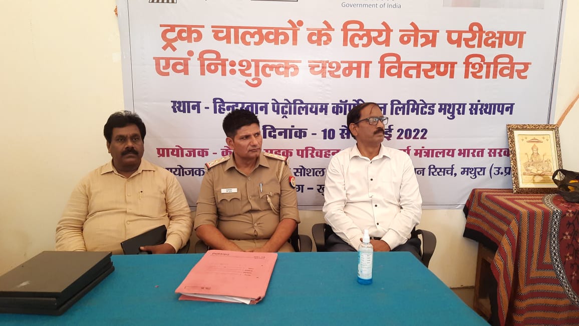 भारी ट्रक चालकों के लिए केंद्रीय सड़क परिवहन एवं राजमार्ग मंत्रालय भारत सरकार के सहयोग से खुशी क्लिनिक तथा इंस्टीट्यूट ऑफ सोशल वेलफेयर एंड एक्शन रिसर्च मथुरा द्वारा निशुल्क नेत्र परीक्षण तथा चश्मा वितरण कार्यक्रम का आयोजन हिंदुस्तान पैट्रोलियम कॉरपोरेशन लिमिटेड मथुरा संस्थापन में दिनांक 1० से 12 मई 2022 तक किया जा रहा है। विस्तार पूर्वक जानकारी के लिए क्लिक करें ऑडियो पर और सुनें पूरी खबर।