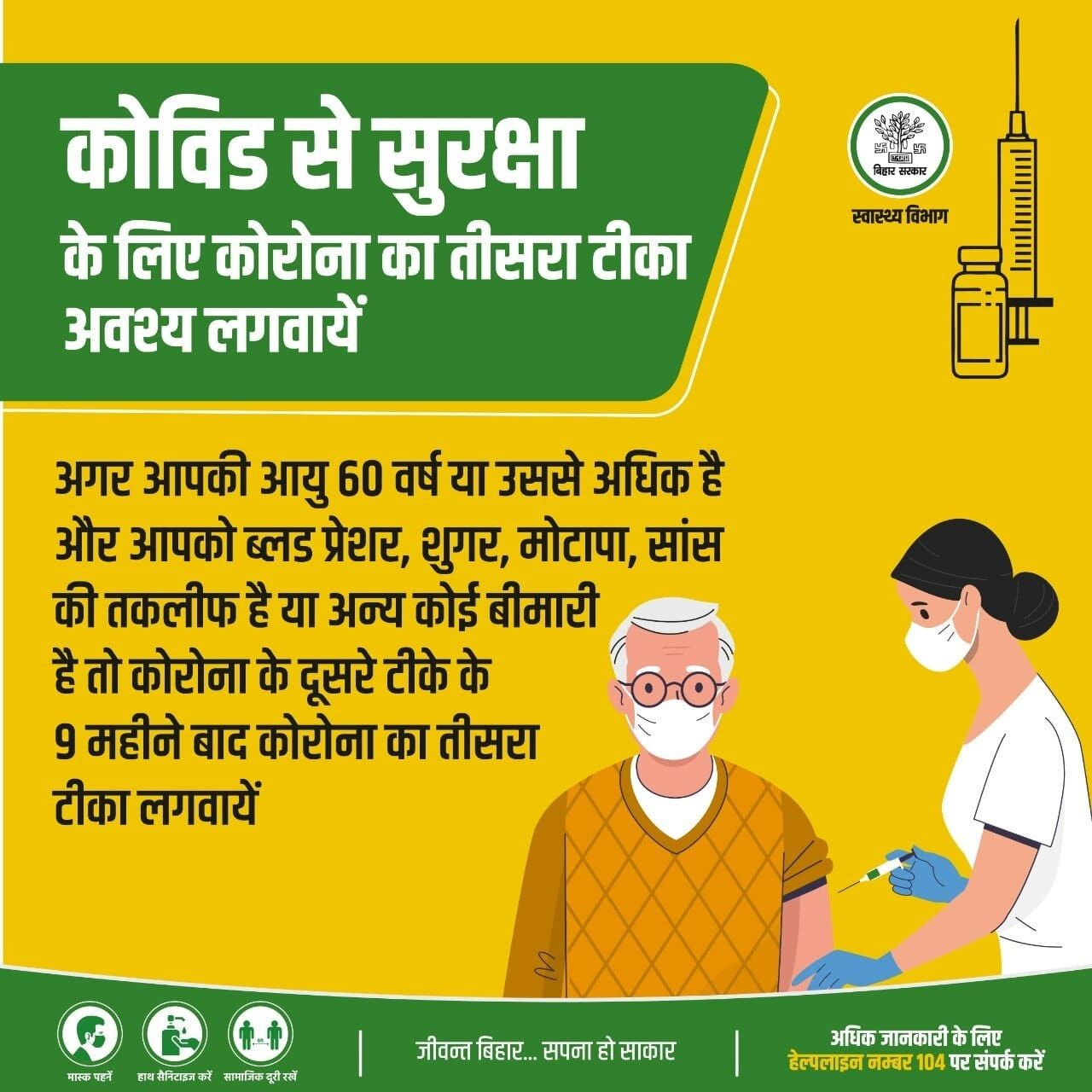 कोविड का तीसरा टीका मतलब ज्यादा सुरक्षा, सभी 60 वर्ष से अधिक उम्र वाले व्यक्ति कोविड के दूसरे टीके के 9 महीने बाद तीसरा टीका जरूर लगवायें।ऑडियो पर क्लिक कर सुनें पूरी खबर को।