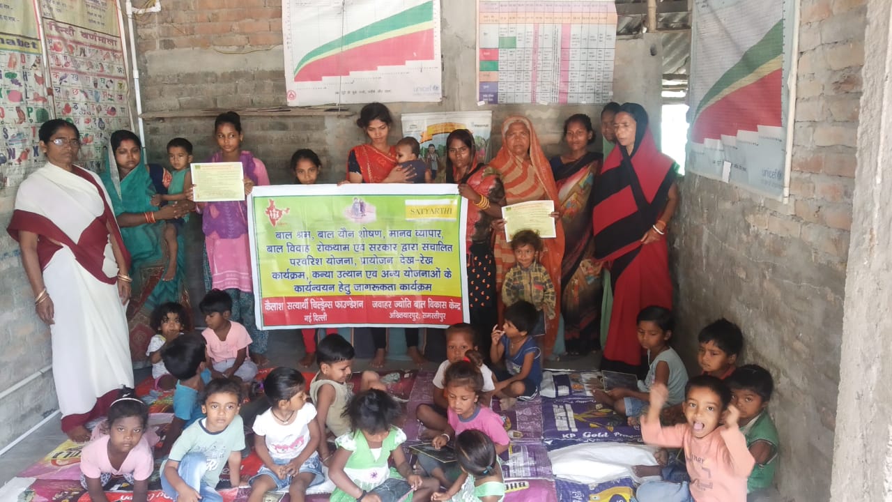 कैलाश सत्यार्थी चिल्ड्रेन्स फाउंडेशन, नई दिल्ली और जवाहर ज्योति बाल विकास केन्द्र के संयुक्त तत्वावधान में पुसा प्रंखड के मोहम्मदपुर देवपार गांव के आंगनबाड़ी केंद्र संख्या -11 में बच्चों और माता समिति सदस्यों के साथ जवाहर ज्योति बाल विकास केन्द्र, समस्तीपुर के कौशल कुमार और सपोर्ट पर्सन दीप्ति कुमारी नें बाल हिंसा, पोक्सो कानून तथा बाल विवाह के विरुद्ध मजबुती से अपनी आवाज बुलंद करने हेतु जागरुक किया। मौके पर स्थानीय मुखिया नवीन कुमार राय नें बताया कि उन्होंने ग्राम पलायन पंजी में अपनें पंचायत का डाटाबेस इकट्ठा कर रहा हुँ। मौके पर श्वेता कुमारी और सिग्मा कर्ण के द्वारा 1098, अनाथ, बेघर, गुमशुदा, बिमारी, बाल विवाह, बाल मजदूर, बाल व्यापार, छेड़छाड़, कुपोषण, मेडिकल सहायता, सेल्टर, नामांकन एवं मानसिक प्रंताडना से बचाव के लिए जागरुक किया। इस संवाद कार्यक्रम की अघ्यक्षता सेविका सुमित्रा देवी सेविका नें किया।