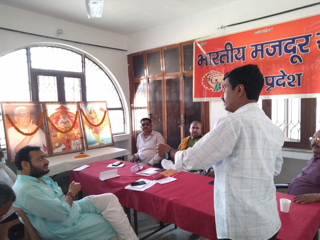 पटना गांधी मैदान बिस्कोमान के पास स्थित ग्लो गेस्ट हाउस परिसर में भारतीय मजदूर संघ बिहार प्रदेश की एक दिवसीय पदाधिकारी बैठक प्रदेश अध्यक्ष राजेश लाल जी के अध्यक्षता में संपन्न हुई इस बैठक में मुख्य रूप से उपस्थित भारतीय मजदूर संघ के राष्ट्रीय महामंत्री विनय कुमार सिन्हा जी एवं क्षेत्रीय प्रभारी श्री गणेश मिश्रा जी का मार्गदर्शन उपस्थित कार्यकर्ता गणों को प्राप्त हुआ इस बैठक में मुख्य रूप से अप्रैल माह 20 22 थावे मैं संपन्न होने जा रही प्रदेश कार्यसमिति की बैठक से संबंधित विषयों पर चर्चा की गई साथ ही भारतीय मजदूर संघ ठेका मजदूरों के हित में प्रदेश स्तरीय आंदोलन करने का निर्णय लिया साथ ही महिला कार्यकर्ता अभ्यास वर्ग प्रदेश कार्यसमिति अभ्यास वर्ग एवं युवा कार्यकर्ता अभ्यास वर्ग भी करने का निर्णय लिया साथ ही अप्रैल माह 2023 में भारतीय मजदूर संघ का राष्ट्रीय अधिवेशन जोकि पटना स्थित केशव सरस्वती विद्या मंदिर परिसर क्षेत्र में संपन्न होने जा रही पर विस्तार से चर्चा की गई इस बैठक में प्रदेश पदाधिकारी के रूप में संजय कुमार सिन्हा प्रदेश महामंत्री के साथ ही पदाधिकारी के रूप में राकेश चौधरी रामबाबू सिंह मुरारी प्रसाद विनोद सिंह अजय कुमार सिंह बलराम पांडे मनीष कुमार प्रमोद राम आदि उपस्थित थे। विस्तृत जानकारी के लिए ऑडियो पर क्लिक करें।