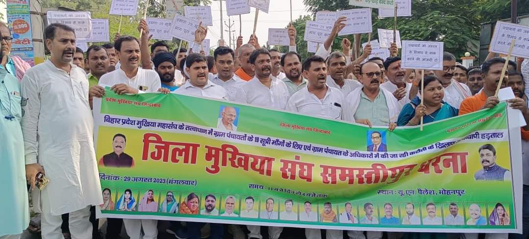 आज बिहार राज्य मुखिया संघ द्वारा आवाहन किए गए जिला मुखिया संघ के महाधरना में कही। समस्तीपुर जिला मुखिया संघ के अध्यक्ष राजीव कुमार झा की अध्यक्षता यूएन पैलेस मोहनपुर में आयोजित इस धरना को सम्बोधित करते हुए आपकी लड़ाई में हम सड़क से सदन तक आपके साथ हैं, आपकी मांग बहुत हीं जायज है और सरकार को इसे बिना शर्त मानते हुए लागू कर देना चाहिए। पंचायती राज व्यवस्था के महत्वपूर्ण कड़ी के रुप में आपका योगदान समुदाय विकास में अहम है इसलिए मैं पूर्व में भी आपके अधिकार और मांगों के लिए संघर्षरत रहा हुं और अभी भी साथ हूं और भविष्य में भी रहूंगा। वहीं महाधारणा को सम्बोधित करते हुए अन्य अतिथियों एवम मुखिया संघ के प्रखंड अध्यक्षों ने अपने 19 सूत्री मांग के पक्ष में अपनी बात रखी । सभी ने अपने एक स्वर में कहा कि केंद्र सरकार और राज्य सरकार दोनों ही मिलकर पंचायत के अधिकार में कटौती कर रही है और ग्राम सभा को कमजोर कर रही है। हमारी मांग है कि ग्राम सभा द्वारा पारित योजनाओं को शत प्रतिशत क्रियान्वित किया जाए ।15 में वित्त आयोग एवं छठी राज्य वित्त आयोग से प्राप्त राशि का उपयोग पूर्ण रूपेण पंचायत प्रतिनिधियों के माध्यम से हो एवं 73 में संशोधन के अनुरूप पंचायत को दी गई 29 विषयों को पंचायत को सौप जाए। महाधरना को जिलाध्यक्ष राजीव झा के साथ मनोज प्रसाद सुनील, अरविंद राय उर्फ डोमन राय, अजय कुमार, शिवचन्द्र यादव, विश्वनाथ सिंह, संजू कुमारी, नारायण शर्मा, अमरेंद्र सिंह, बबलू सिंह, राम चन्द्र सिंह, चन्द्रमणि सिंह, रत्न सिंह, सरिता देवी, रणजीत महतो, सुनील कुमार शोले, अंजना कुमारी, संजीब सिंह, दिलीप महतो, प्रवीण कुमार, गीता देवी इत्यादि ने संबोधित किया।