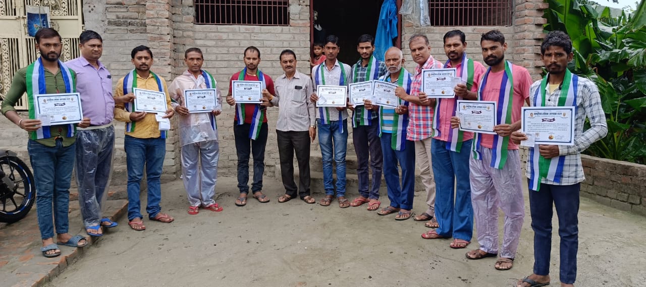 आज नीरपुर में रालोजद की समस्तीपुर प्रखण्ड इकाई के विस्तार के क्रम में प्रदेश महासचिव लाल बाबू महतो एवम प्रखण्ड अध्यक्ष अशोक मेहता ने संजय कुशवाहा जिला महासचिव, अशोक कुमार चौधरी पूर्व मुखिया प्रत्यासी, हरिलाल सहनी,राम चंद्र महतो, मो0 लुकमान, मो0 मुस्ताक,तनवीर आलम, मो0 आसिफ,सुजीत कुमार, महेश्वर सहनी, मो0 फैज, मो0 इजहार, राम नारायण महतो, मुकेश कुमार कुशवाहा, हरेकिशुन सहनी वर्तमान वार्ड सदस्य एवं उपस्थित अन्य ग्रामीणों के सर्वसम्मति से इंजीनियर गुलाम जिलानी को प्रखंड उपाध्यक्ष जबकि अशोक कुमार चौधरी को नीरपुर पंचायत अध्यक्ष तथा हरेकिशुन सहनी को कर्पूरीग्राम के पंचायत अध्यक्ष के पद पे मनोनित करते हुए नियुक्ति पत्र दिया। प्रधान महासचिव लाल बाबू महतो ने बताया की समस्तीपुर प्रखण्ड के सभी पंचायतों में अब पंचायत अध्यक्ष मनोनित कर लिए गए हैं जबकि कई पंचायतों में कार्यकारिणी भी गठित कर ली गई है और जिन पंचायतों में बचा है वहां 30 अगस्त कर कार्यकारिणी गठित कर ली जायेगी एवम आगामी 31 अगस्त को जिला कार्यकर्ता सम्मेलन में भारी संख्या में रालोजद के राष्ट्रीय अध्यक्ष उपेन्द्र कुशवाहा जी के विचारों से प्रेरित होते हुए जिला कार्यकर्ता सम्मेलन में भाग लेंगे।इस खबर को सुनने के लिए ऑडियो पर क्लिक करें।