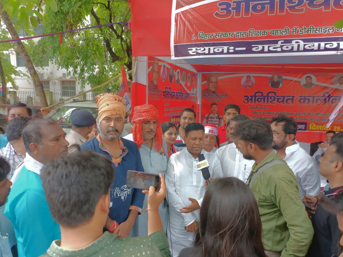 समस्तीपुर से पटना पहुंच कर वरिष्ठ समाजसेवी, अधिवक्ता सह एनजीओ संघ बिहार के सचिव संजय कुमार बबलू ने डोमिसाइल नीति रद्द करने के विरुद्ध चल रहे धरने को गर्दनीबाग धरना स्थल पर पहुँच कर समर्थन दिया! शिक्षक नियुक्ति में डोमिसाइल नीति रद्द करने के विरुद्ध हिंदुस्तानी आवाम मोर्चा के नेतागण 29 जुन से धरने पर बैठे हैं! धरने का नेतृत्व कर रहे हम (से) के नेता वरुणेश विजय ने बताया कि बिहार से बाहर के लोगों को मौका देने के विरुद्ध बिहारी के अस्मिता के रक्षा के लिए हमलोग धरने पर बैठे हैं! बिहार में बेरोजगारी का आलम यह है कि बिहार से लोग जेनरल बोगी में जानवरों की तरह भरकर दुसरे प्रदेश में रोजगार और जीवन यापन के लिए जाते हैं और नीतीश तेजस्वी की सरकार बिहार के नौकरियां को बंदरबांट कर रहे हैं! खबर को पूरा सुनने के लिए ऑडियो लिंक पर क्लिक करें.