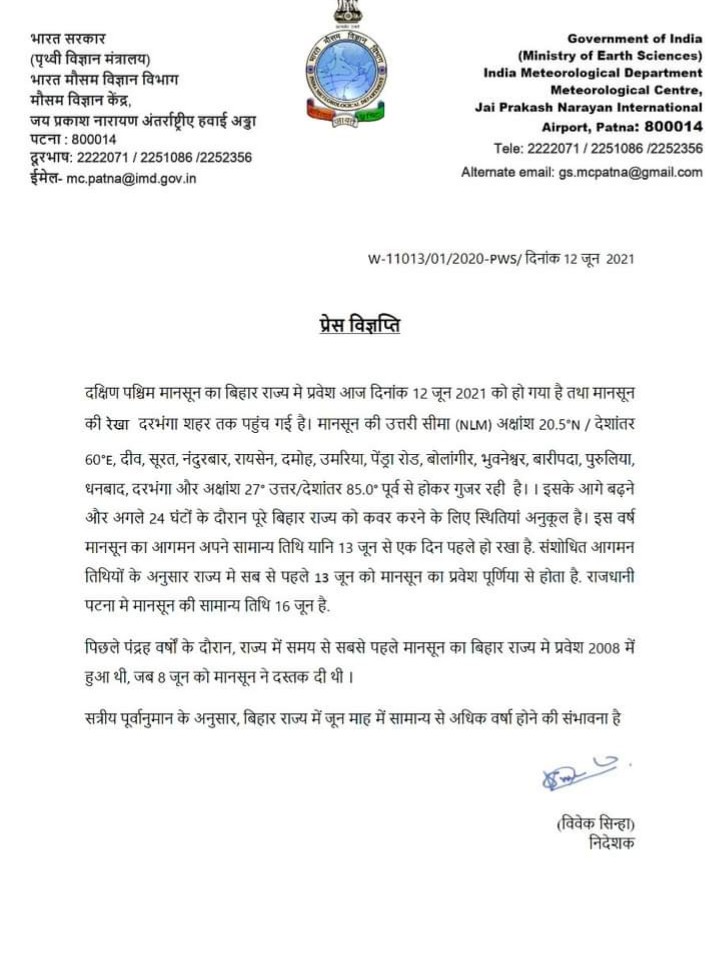 बिहार में समय से पूर्व पहुंचा मान.सून 2008 के बाद पहली बार मानसून का आगमन पहले हो गया
