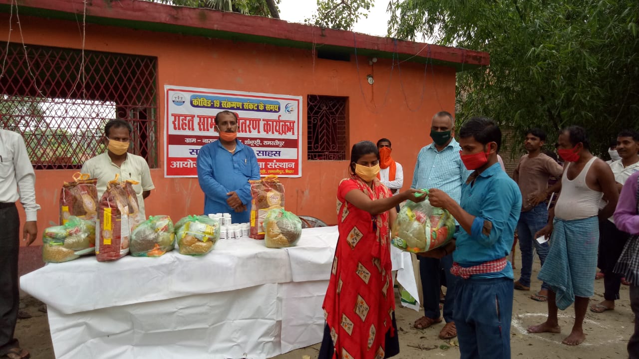आशा सेवा संस्थान द्वारा जन साहस संस्था के सहयोग से 100 प्रवासी मजदूरों के बीच में राहत सामग्री वितरित आशा सेवा संस्थान के सचिव अमित कुमार वर्मा के द्वारा जन साहस के साहयोग से आर्थिक तंगी को ध्यान में रखकर संस्था द्वारा शम्भुपट्टी पंचायत अंतर्गत राजखंड, नारायणपुर डढ़िया, सलेमपुर दशराहा, शम्भुपट्टी एवं पाहेपुर में 100 प्रवासी मजदूरों को आटा, चना दाल,चना,नामक मसाला,सोयाबीन, सरसो तेल,साबुन, मास्क एवं इम्युनिटी बढ़ाने के लिए विटामिन की गोली का भी वितरण किया गया।चेहरे पर मास्क एवं सामाजिक दूरी का पूर्ण रुप से पालन किया गया। इस अवसर पर आशा सेवा संस्थान के सचिव अमित कुमार वर्मा ने बचाव के प्रति लोगों को जागरुक करते हुए कहा कि इस बीमारी से इलाज के लिए सटीक दवा या टीका अभी उपलब्ध नहीं है, अतः बचाव ही सर्वोपरि है। जिसके लिए घर से अनावश्यक बाहर निकलना, चेहरे पर मास्क लगाना, सामाजिक दूरी का ध्यान रखना, हाथों को बार बार साबुन से साफ करने की जरूरत पर उन्होंने बल दिया। जिला स्वयं सेवी संस्था संघ के सचिव संजय कुमार बब्लू ने बताया कि सार्वजनिक जगहों पर थूकने से कोरोना वायरस फैलता है, अतः ऐसी आदत छोड़ने की जरूरत है। ईडन पब्लिक स्कूल के निदेशक ब्रजकिशोर कुमार ने लोगों को कहा कि कोरोना को हराने के लिए हमें सामाजिक दूरी का पालन करना होगा।समाज सेवी मोoकमालुद्दीन ने लोगों से अपील किया कि अनावश्यक घर से बाहर नहीं निकले।मौके पर जवाहर ज्योति बाल विकास केंद्र के सचिव सुरेन्द्र कुमार,चेतना सामाजिक संस्था के अध्यक्ष डॉo मिथिलेश कुमार , विद्यापति एडुकेशनल वेल्फेयर ट्रस्ट के सचिव संजय कुमार राजा,मशरूम उत्पादन केंद्र के चेयरमैन दीपक कुमार सिंह , एन सीएलपी के राज्य संयुक्त सचिव ए. के.वर्मा,कपि शिव शिक्षा सेवाश्रम के सचिव हरिवंश कुमार ने भी अपने अपने विचार व्यक्त किये। शम्भुपट्टी पंचायत की मुखिया रेणु देवी एवं पंचायत समिति मनिता देवी ने जन साहस संस्था के द्वारा प्रवासी मजदूरों के लिए किये साहयोग की सराहना की और धन्यवाद ज्ञापित किया।