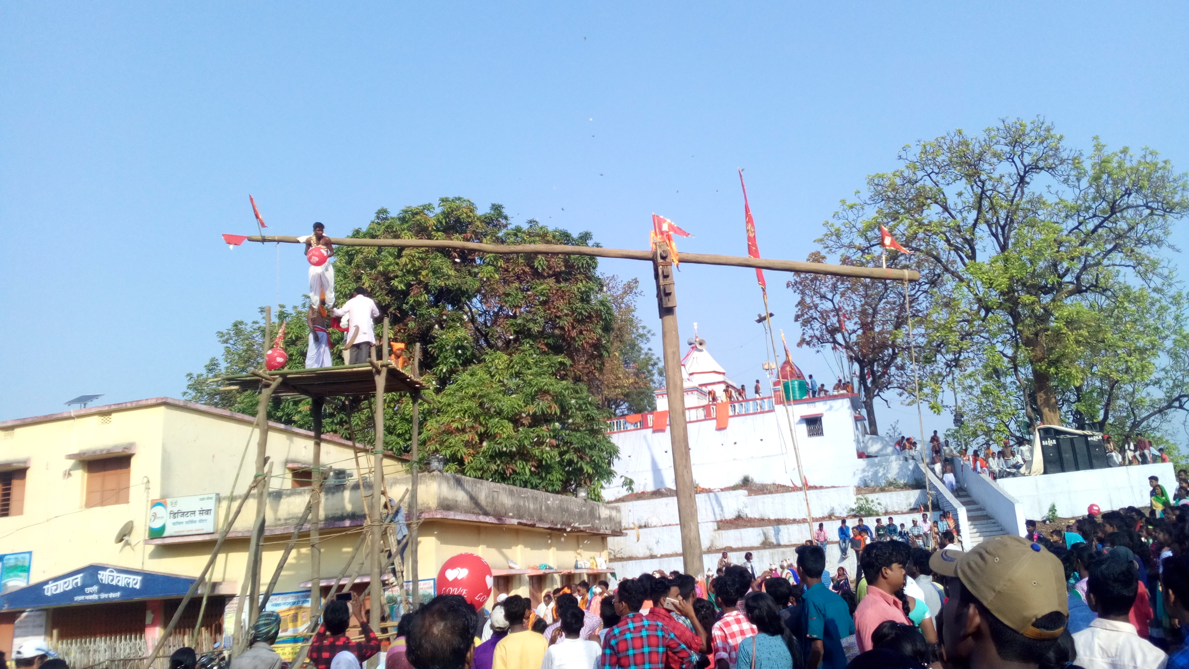 भोक्ता पर्व में दिखी भक्तों की आस्था नावाडीह(बेरमो) : प्रखंड के चपरी के महादेव मंडा स्थित शिव मंदिर में आयोजित भोक्ता पर्व शनिवार की सुबह समाप्त हो गया चैत एकादशी से शुरू हुआ पांच दिवसीय भोक्ता पर्व छठे दिन भक्तों की आस्था को दर्शाने के साथ ही वैशाख प्रतिपदा को समाप्त हो गया। पहले दिन से विधि विधान से इस मौके पर व्रत रख चुके पुरुष भक्त पीठ, पैर व बाजू में लोहे के कांटे चुभोकर लकड़ी के बने बड़े खंभे पर झूले। भक्तों ने अपने गले में पहने माला को तोड़कर नीचे गिराया, जिसे उमड़ी भीड़ ने लपक लिया। ऐसी मान्यता है कि इस फूल को रखने से सुख समृद्धि की प्राप्ति होती है। व्रत रख रहे मुद्रिका प्रसाद महतो व सीताराम महतो ने बताया कि पारंपरिक रूप से इस पर्व को मनाया जाता है। पद्मा महाराजा कामाख्या नारायण सिंह के कार्यकाल से यह त्योहार मनाया जा रहा है। मान्यता है कि यहां सभी की मन्नत पूर्ण होती है और वे इसी प्रकार पीठ पर कील लेकर भगवान को खुश करते हैं। बोकारो जिले के नावाडीह प्रखंड चपरी पंचायत के मुंगो, गूंजरडीह मकोली, फुसरो सारूबेडा बगडेगवा बडकीबेढ़ा सिरसा व महादेव मुंडा में इस प्रकार का व्रत रखा जाता है। मेला में दूर दराज से लोग आते हैं। पहले तो राजा के परिवार यहां पूजा संपन्न कराते थे। अब समिति बनाकर गांव के आर्थिक सहयोग से पूजा होती है। मौके पर मुद्रिका प्रसाद महतो अध्यक्ष महतो सचिव रामलाल महतो सदस्य नागेश्वर महतो भीखान महतो, त्रिभूवन महतो,भैरव महतो,मनोज सिंह,बैनी सिंह,नरायण महतो, गिरधारी महतो, सुरेन्द्र मिस्त्री राजू महतो चपरी मुखिया गौरिशंकर महतो का विशेष सहयोग रहा