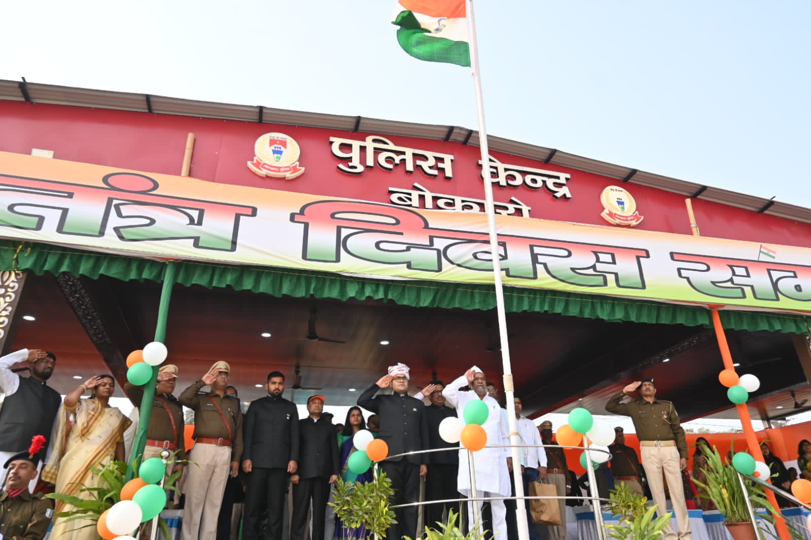 सेक्टर बारह स्थित पुलिस लाइन मैदान में गुरूवार को सूबे के माननीय स्कूली शिक्षा एवं साक्षरता विभाग एवं मद्य निषेद विभाग के मंत्री जगनाथ महतो ने 74 वें गणतंत्र दिवस के मुख्य समारोह स्थल पर के अवसर पर झंडोत्तोलन किया। और तिरंगे को सलामी दी। इससे पूर्व उन्होंने विभिन्न पलटन के परेड का निरिक्षण किया। मौके पर उप महा निरीक्षक कोयला प्रक्षेत्र श्री मयूर पटेल,डीआईजी सीआरपीएफ श्री डीपी चौधरी,उपायुक्त श्री कुलदीप चौधरी आदि कई गण्यमान पदाधिकारी उपस्थित थे विस्तार पूर्वक जानकारी के लिए क्लिक करें ऑडियो पर और सुनें पूरी खबर।