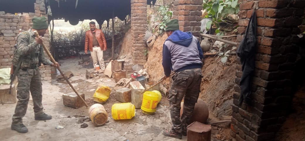 नावाडीह थाना के अंतर्गत अरगामो में अवैध शराब को लेकर छापामारी के दौरान नावाडीह थाना प्रभारी महावीर पंडित ने अरगामो निवासी जयराम चौधरी के बारी से सत्तर किलो जावा महुआ को विनष्ट किया। तथा अवैध शराब बनाने वाले उपकरण को धवस्त किया।तथा थाना प्रभारी ने उचित करवाई करने का आदेश दिया