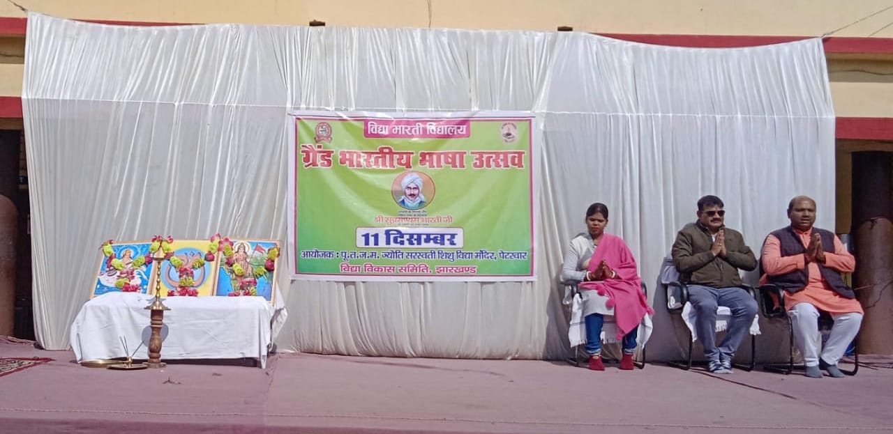 पूज्य तपस्वी श्री जगजीवन जी महाराज ज्योति सरस्वती शिशु विद्या मंदिर पेटरवार में सोमवार को ग्रैंड भारतीय भाषा उत्सव मनाया गया. कार्यक्रम का आरम्भ दीप प्रज्ज्वलन एवं वंदना से किया गया. क्षेत्रीय भाषाओं को बढ़ावा देने के लिए 11 दिसम्बर 2023 को आजादी के सिपाही और तमिल महाकवि सुब्रमण्यम भारती की जयन्ती पर झारखंड के विभिन्न क्षेत्रीय भाषाओं पर एक भव्य कार्यक्रम आयोजित किया गया. जिसमें गीत, नृत्य, नाटक, भाषण आदि का प्रस्तुती करण छात्र छात्राओं की ओर से किया गया.