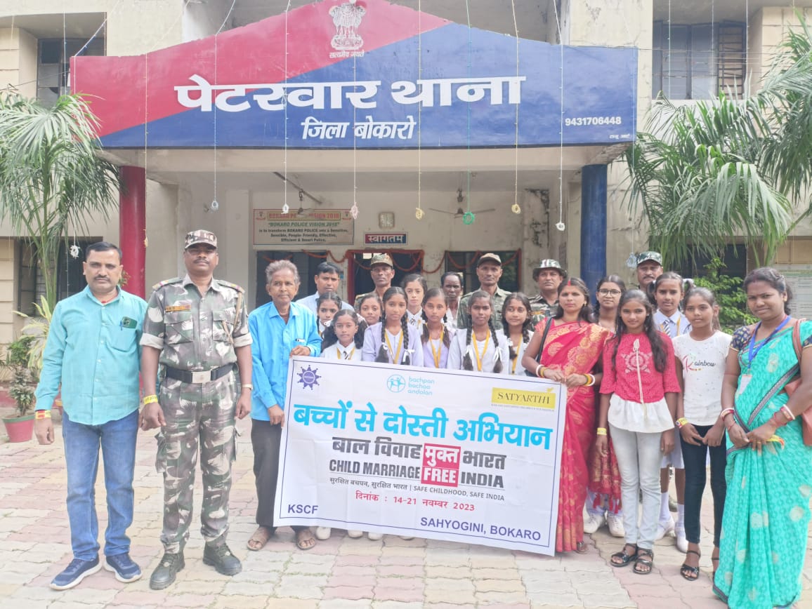पेटरवार थाना में कैलाश सत्यार्थी चिल्ड्रन फाउंडेशन एवं सहयोगिनी बोकारो के तत्वाधान में दोस्ती कार्यक्रम का आयोजन शुक्रवार को किया गया. इस दौरान पेटरवार थाना के पुलिस पदाधिकारी सअनि जुम्बल सिंह भोयपाई, सअनि अमरजीत कुमार सिंह, मुंशी अजय कुमार सिंह, आरक्षी चंद्रकांत सिंह, अनिल सिंह, रंजीत कुमार, हवलदार महावीर उरांव सहित अन्य पुलिसकर्मी को डेफोडिल्स पब्लिक स्कूल ज़ारा के बच्चों ने सुरक्षा बैंड बांधकर बच्चों से दोस्ती करने का संदेश दिया. थाना के जुम्बल सिंह भोयपाई ने बच्चों को संबोधित करते हुए कहा कि बच्चों की किसी भी तरह की समस्या पर प्रशासन हर समय तत्पर है. अमरजीत कुमार सिंह ने कहा कि ऐसे कार्यक्रमों से बच्चों में ज्ञान और कानून की जानकारी मिलती है. संस्था के फुलेंद्र रविदास ने बताया कि कोई भी बच्चा अगर मुशीबत में हो तो पुलिस प्रशासन को सूचना दें, सूचना मिलते ही बच्चे की सहायता की जाएगी. मौके पर डेफोडिल्स के प्रधानाध्यापक अनंत कुमार शर्मा, सहयोगिनी के पुष्पा देवी, उस्मान अंसारी, मंजू देवी आदि सहित स्कूली बच्चे उपस्थित थे.