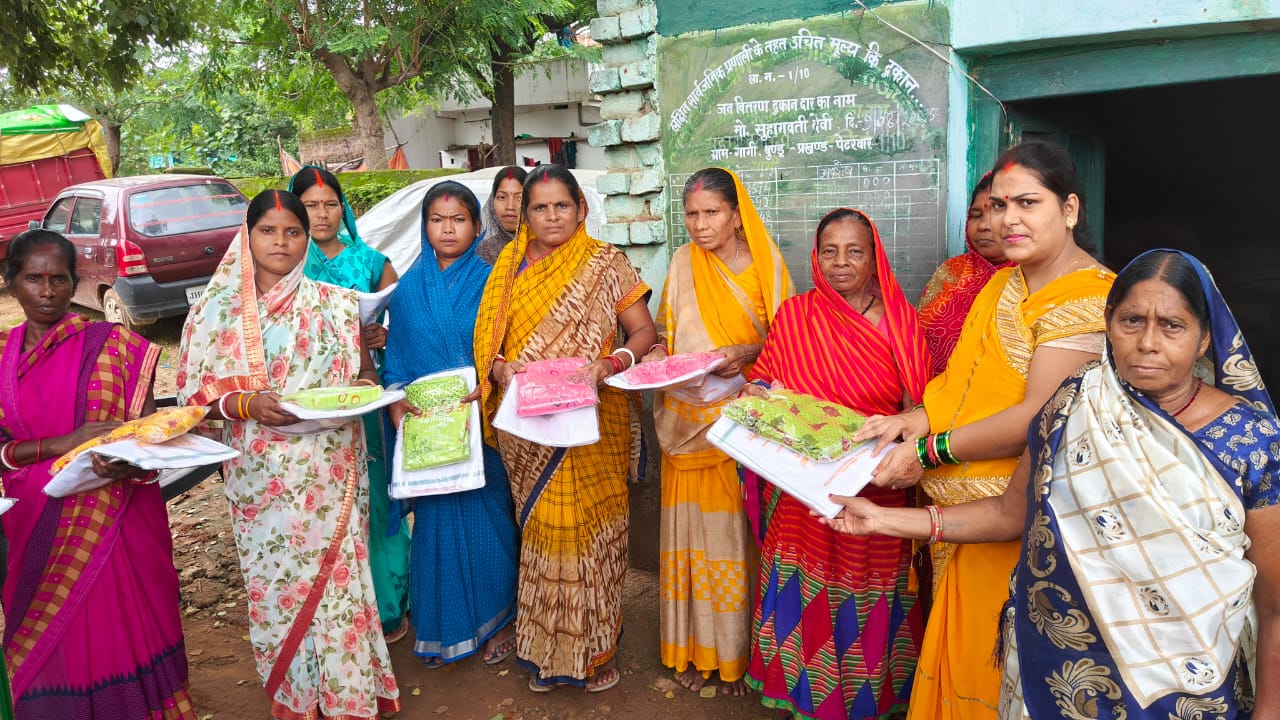 पेटरवार प्रखंड अंतर्गत बुंडू पंचायत की मुखिया निहारीका सुकृति के द्वारा गुरुवार को अपने क्षेत्र के सभी जन वितरण प्रणाली दुकानों में पहुंचकर सोना-सोबरन धोती-साड़ी योजना के तहत साड़ी, धोती व लूंगी का वितरण लाभुकों के बीच किया. मौके पर जन वितरण प्रणाली के दुकानदार सुहागवती देवी, नागेश प्रसाद, विजय साव, कल्याणी देवी वास्ते बबली साव सहित सोमेश प्रसाद, हरेंद्र प्रसाद, गिरधारी प्रसाद, लाल बाबू प्रसाद, अवध किशोर प्रसाद व लाभुक उपस्थित थे.