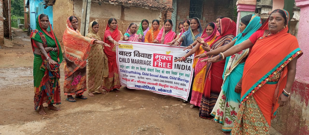 पेटरवार. कैलाश सत्यार्थी चिल्ड्रेन फाउंडेशन और सहयोगिनी बहादुरपुर की ओर से पेटरवार प्रखंड अंतर्गत उत्तासारा गांव में मंगलवार वार को समूह की महिलाओं के साथ जिला को बाल विवाह मुक्त बनाने को लेकर शपथ ग्रहण कार्यक्रम का आयोजन किया गया. सहयोगिनी की फील्ड मोबिलाइजर मंजू देवी ने कहा कि संस्था द्वारा बोकारो जिले के 150 गांवों को बाल विवाह मुक्त बनाने के लिए जागरूकता अभियान चलाया जा रहा है. इसके साथ ही बाल यौन हिंसा और बाल श्रम के खिलाफ भी सरकार के साथ मिलकर काम किया जा रहा है. उन्होंने बताया कि बाल विवाह के कारण लड़कियां जल्द ही मां बन जाती हैं और मां व बच्चे दोनों को कुपोषण का शिकार होना पड़ता है. लड़कियाँ आगे पढ़ और बढ़ नहीं पा रही हैं. हमें मिलकर इसे रोकना होगा. विकसित भारत के लिए बाल विवाह एक अभिशाप है जो समाज को खोखला कर रही है. कहा कि बाल विवाह जैसे कुरीति को सभी के सहयोग से ही समाप्त किया जा सकता है. इसके लिए कानून भी बनाया गया है. बाल विवाह में शामिल होने वाले सभी लोग जेल जा सकते हैं और उस पर जुर्माना भी लग सकता है. लड़का का 21 वर्ष व लड़की का 18 वर्ष पूरा होने के बाद ही विवाह करने का कानून है. इसके लिए लोगों को संगठित होकर संकल्प लेने की आवश्यकता है. मौके पर महिला समूह की महिलाएं शीला देवी, किरण देवी,सोनी कुमारी,गीता देवी, अनिता देवी आदि उपस्थित थे.