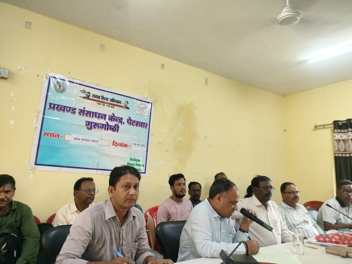 पेटरवार प्रखंड सह अंचल कार्यालय के सभागार में गुरुवार को मासिक गुरुगोष्ठी बीडीओ शैलेन्द्र कुमार चौरसिया की अध्यक्षता में की गयी. गुरुगोष्ठी में सभी विद्यालयों में अध्ययनरत शतप्रतिशत छात्र-छात्राओं के जन्मप्रमाण पत्र निर्माण की क्रमवार जानकारी बीडीओ ने उपस्थित प्रधानाध्यापकों से ली. प्रखंड क्षेत्र के 40 विद्यालयों के द्वारा जन्मप्रमाण पत्र निर्माण में कोताही बरतने पर कड़ी नाराजगी व्यक्त करते हुए कहा कि विभाग के निर्देशों की अवहेलना करना कतई बर्दाश्त नही की जा सकेगी. उन्होंने आगामी बैठक में शत प्रतिशत बच्चों के अभिभावकों से सम्पर्क कर जन्मप्रमाण पत्र निर्माण करने का निर्देश दिया. इसके अतिरिक्त गुरुगोष्ठी में आगामी 17 सितम्बर से 2 अक्टूबर तक चलने वाले स्वास्थ्य सेवा पखवाड़े के तहत कार्डधारकों को आयुष्मान भव योजना से जोड़ने एवं विद्यालय परिसर में खाली पड़ी जमीन पर पोषण वाटिका लगाने का निर्देश दिया. बैठक में बीईईओ घनश्याम साहू, बीपीओ मो.इकबाल, प्रधानाध्याक भागीरथ प्रसाद बक्सी, भूमिका कुमारी, टीकाराम महतो, कुमार कौशलेश सहित सभी विद्यालयों के प्रधानाध्यापक उपस्थित थे.
