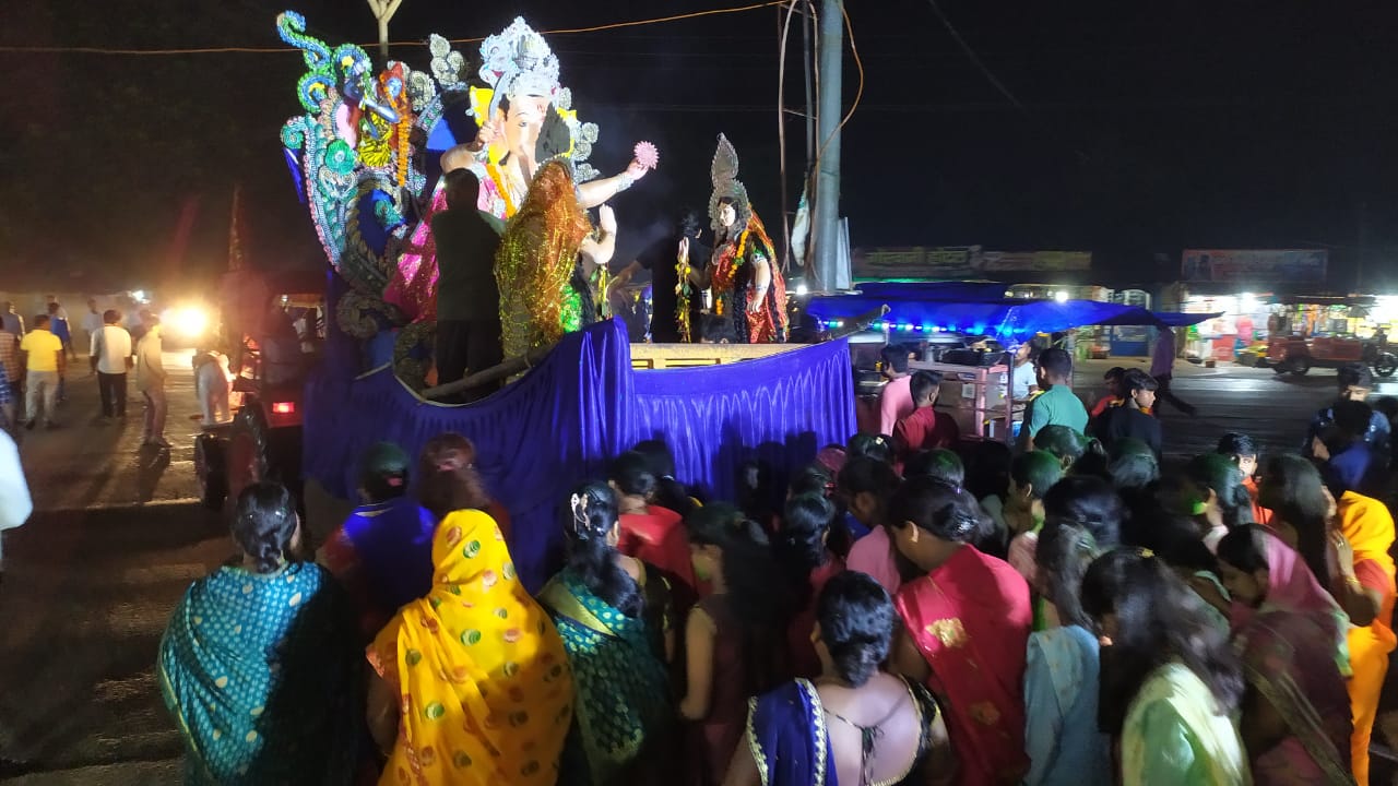 श्री श्री गणेश पूजा समिति खत्रीमुहल्ला पेटरवार की ओर से आयोजित पांच दिवसीय श्री गणेश महोत्सव के अंतिम दिन शनिवार की देर रात्रि में एक भव्य शोभायात्रा निकाल कर गणेश प्रतिमा का विसर्जन कर दिया गया. शनिवार की देर रात्रि में कार्यक्रम स्थल से गाजे- बाजे के साथ जयकारा लगाते हुए एक शोभायात्रा निकाली गई. यह शोभायात्रा पेटरवार के विभिन्न मार्गों से गुजरते हुए खत्री मुहल्ला स्थित राजा तालाब पहुंचा. जहां गणेश प्रतिमा का विसर्जन कर दिया गया. शोभायात्रा में महिला, पुरुष और बच्चे काफी संख्या में शामिल रहे. शोभायात्रा यात्रा के दौरान श्रद्धालुओं के बीच प्रसाद का वितरण किया गया. शोभायात्रा जब तेनुचौक पहुंची तो होटल बसेरा की ओर से श्रद्धालुओं को शीतल पेय पिलाया गया. श्री श्री गणेश पूजा समिति खत्रीमुहल्ला पेटरवार की ओर से आयोजित पांच दिवसीय श्री गणेश महोत्सव के अंतिम दिन की देर रात्रि में एक भव्य शोभायात्रा निकाल कर गणेश प्रतिमा का विसर्जन कर दिया गया. शनिवार की देर रात्रि में कार्यक्रम स्थल से गाजे- बाजे के साथ जयकारा लगाते हुए एक शोभायात्रा निकाली गई. यह शोभायात्रा पेटरवार के विभिन्न मार्गों से गुजरते हुए खत्री मुहल्ला स्थित राजा तालाब पहुंचा. जहां गणेश प्रतिमा का विसर्जन कर दिया गया. शोभायात्रा में महिला, पुरुष और बच्चे काफी संख्या में शामिल रहे. शोभायात्रा यात्रा के दौरान श्रद्धालुओं के बीच प्रसाद का वितरण किया गया. शोभायात्रा जब तेनुचौक पहुंची तो होटल बसेरा की ओर से श्रद्धालुओं को शीतल पेय पिलाया गया.