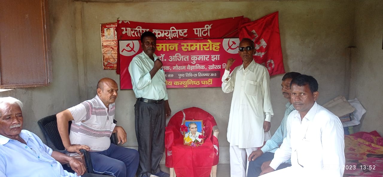 पेटरवार तेनु मुख्य पथ पर स्थित भाकपा कार्यालय में शुक्रवार को भाकपा की ओर से एक श्रद्धांजलि सभा का अयोजन कर धरा -गगन सिद्धांत के प्रणेता सह खोरठा साहित्यकार डॉ अजित कुमार झा की 11 वीं पुण्यतिथि मनाई गई. इस मौके पर भाकपा कार्यकर्ताओं ने उनकी तस्वीर पर पुष्प अर्पित करते हुए उन्हें श्रद्धांजलि दी. डॉ झा की जीवनी व कृति पर विस्तार से प्रकाश डाला गया. इस मौके पर पंचानन महतो, महेंद्र मुंडा, अजित महतो, दुखतार अंसारी, कालू बंशल, अनंगारी झा, गुलाब महतो, भोला महतो, फेकन महतो सहित अन्य लोग उपस्थित थे.