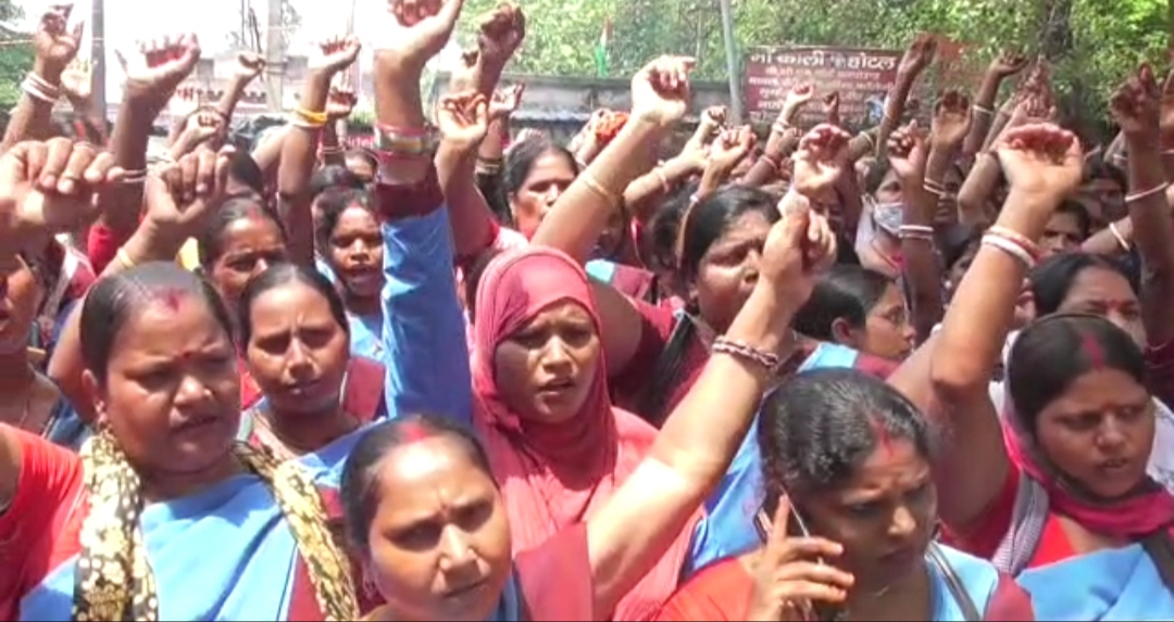 झारखंड राजय जलसहिया कर्मचारी संघ ने 7सुत्री मांगों को लेकर रणधीर वर्मा चौक में दिया धरना