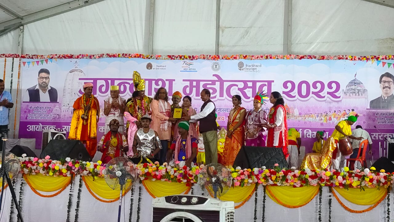 आरोही नाट्य मंच के कलाकारों को रांची में पद्मश्री मुकुंद नायक ने किया सम्मानित