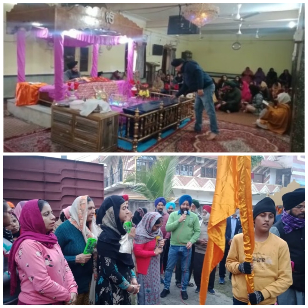 गिरिडीह : गिरिडीह के सिख समुदाय द्वारा सिखों के दसवें गुरू गुरु गोविंद सिंह की 356 वें प्रकाश पर्व को लेकर शहर में निकली जा रही प्रभात फेरी बुधवार को प्रधान गुरद्वारा श्री गुरूसिंह सभा पहुंच कर समापन हुआ। इस दौरान प्रधान गुरद्वारा श्री गुरूसिंह सभा में प्रभात फेरी के पहुंचने पर संगतों पर पुष्प वर्षा कर उनका स्वागत किया गया। इस अवसर पर प्रधान गुरुद्वारा में महिला सिख जत्था द्वारा शबद कीर्तन व अरदास किया गया।इस खबर को सुनने के लिए ऑडियो पर क्लिक करें।