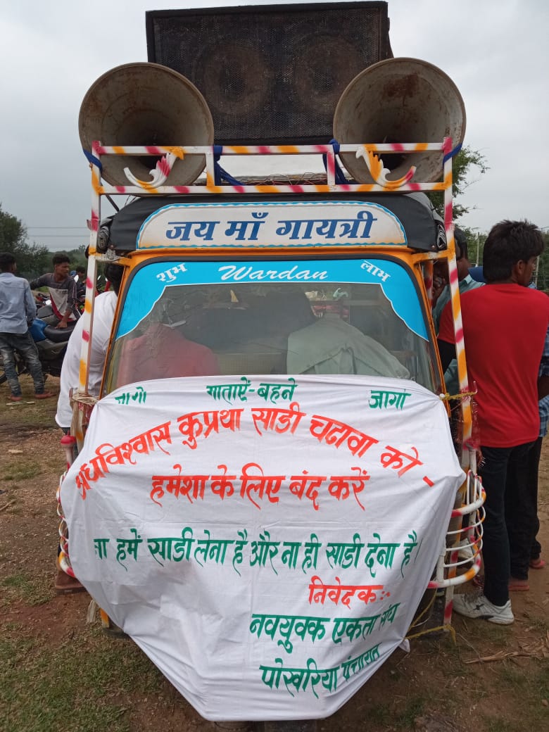 झारखण्ड राज्य से सोहन ने धनबाद/गिरिडीह मोबाइल वाणी के माध्यम से बताया कि जिले के बगोदर प्रखंड के पोखरिया पंचायत में नवयुवक एकता संघ द्वारा शनिवार को अंधविश्वास कुप्रथा साडी चढ़ावा को हमेशा के लिए बंद करने को लेकर जागरूकता रैली निकाली गई। जो पोखरिया पंचायत के विभिन्न टोली मुहल्ले में भ्रमण किया गया। इस दौरान लोगों ने ना हमें साड़ी लेना है और ना ही साड़ी देना है आदि नारे लगा रहे थे।ऑडियो पर क्लिक कर सुनें पूरी ख़बर