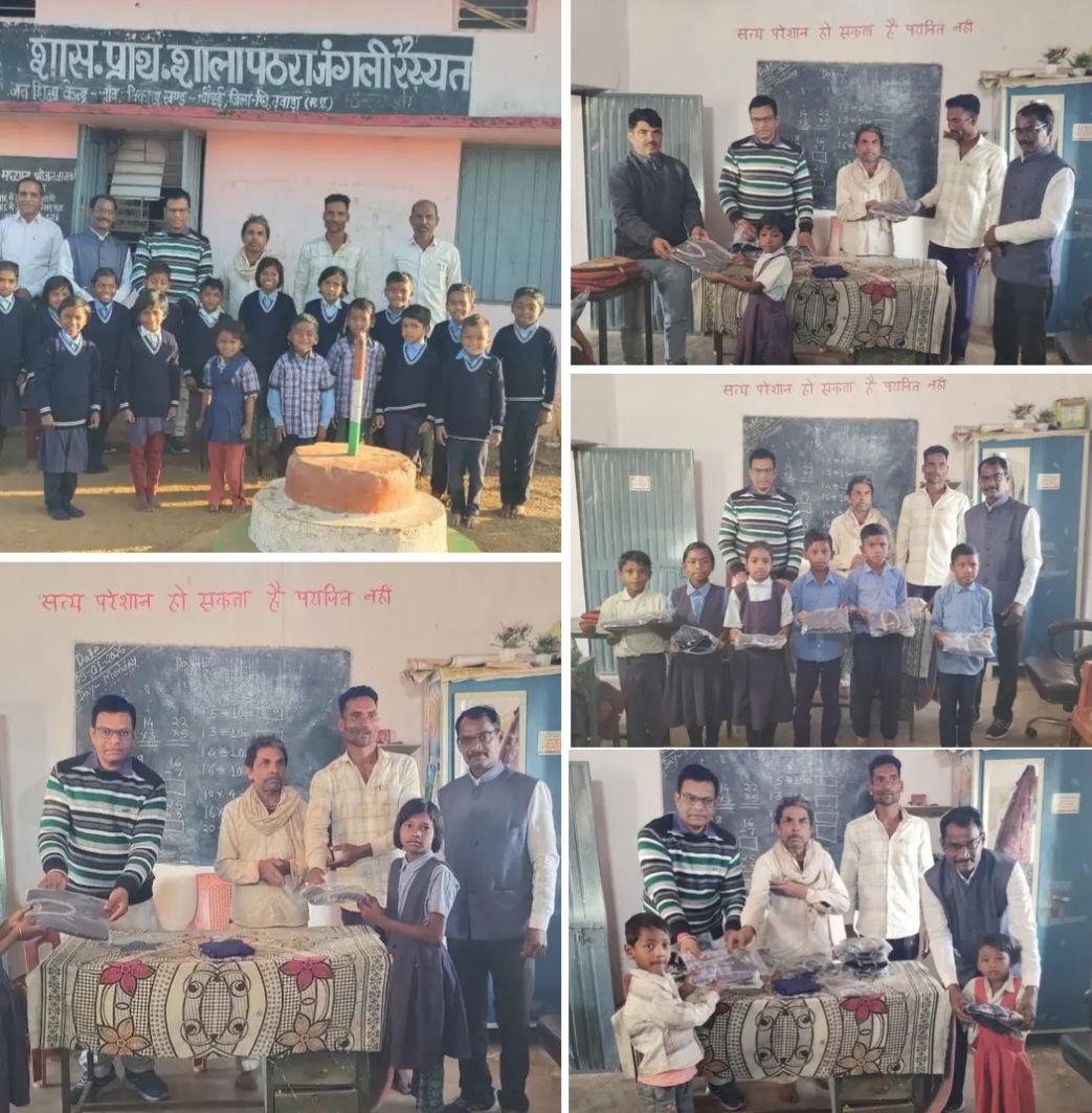 स्कूल शिक्षा विभाग के विद्यालय उपहार योजना अंतर्गत कलेक्टर श्री हरेंद्र नारायन के निर्देशानुसार जिला शिक्षा अधिकारी श्री जी.एस. बघेल के मार्गदर्शन में उपहार योजना विद्यालयों में संचालित हो रही है।राज्यपाल पुरुस्कृत शिक्षक व सचिव टीचर्स वेलफेयर सोसायटी चाँद श्री राकेश कुमार मालवीय ने बताया कि विकासखंड चौरई के संकुल केंद्र व जनशिक्षा केंद्र चाँद के शासकीय प्राथमिक शाला पठरा जंगली रैय्यत में टीचर्स वेलफेयर सोसायटी चाँद द्वारा अध्ययनरत 15 छात्र-छात्राओं को गर्म स्वेटर व आंगनवाड़ी के 3 बच्चों को आवश्यक कपड़े प्रदान किये गए। ग्राम पठरा जंगली रैय्यत जो पहाड़ी पर स्थित है और आदिवासी समाज के लोग निवास करते है तथा पहाड़ी में होने की वजह से ठंडी हवा का वहां ज्यादा प्रकोप ।