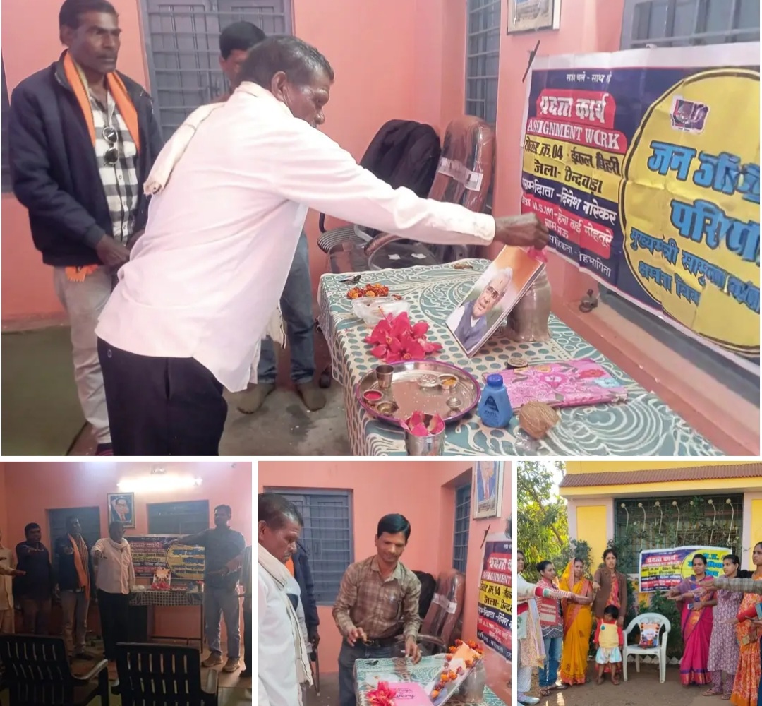 मध्यप्रदेश शासन की सुशासन नीति को जन-जन तक पहुंचाने के लिए प्रदेश के मुख्यमंत्री डॉ. मोहन यादव के आव्हान पर सुशासन सप्ताह के अंतर्गत मध्यप्रदेश जन अभियान परिषद् मोहखेड़ के सीएमसीएलडीपी परामर्शदाता श्री कैलाश सोनेवार, श्री दिनेश नारेकर एवं एमएसडब्ल्यू विद्यार्थियों में प्रवीण डोलेकर, शशी बारंगे, मीना राजनकर, गिरिश्मा चौतरे, मिनी मस्तकार, बीएसडब्ल्यू छात्रा पायल सूर्जुसे व ग्राम निवासी गीतांजली, देशमुख, रोशनी, रेखा, छवि नारेकार के माध्यम से सेक्टर क्रमांक 04 व 05 के ग्राम-उमरनाला व खैरवाड़ा में भारत के पूर्व प्रधानमंत्री पं.अटल बिहारी वाजपेयी जयंती मनाई गई। जिसमें सर्वप्रथम उप सरपंच श्री देवीलाल सरयाम द्वारा पूर्व प्रधानमंत्री अटल बिहारी जी के छायाचित्र पर माल्यार्पण कर पूजन किया गया। परामर्शदाता श्री कैलाश सोनेवार ने श्री बाजपेयी के जीवनवृत्त पर प्रकाश डालते हुए सुशासन की शपथ दिलाई । कार्यक्रम के दौरान ग्राम विकास प्रस्फुटन समिति के अध्यक्ष श्री अशोक साहू, ग्राम रोजगार सहायक श्री सुनील मेश्राम एवं ग्रामीणों की उपस्थिति रही।