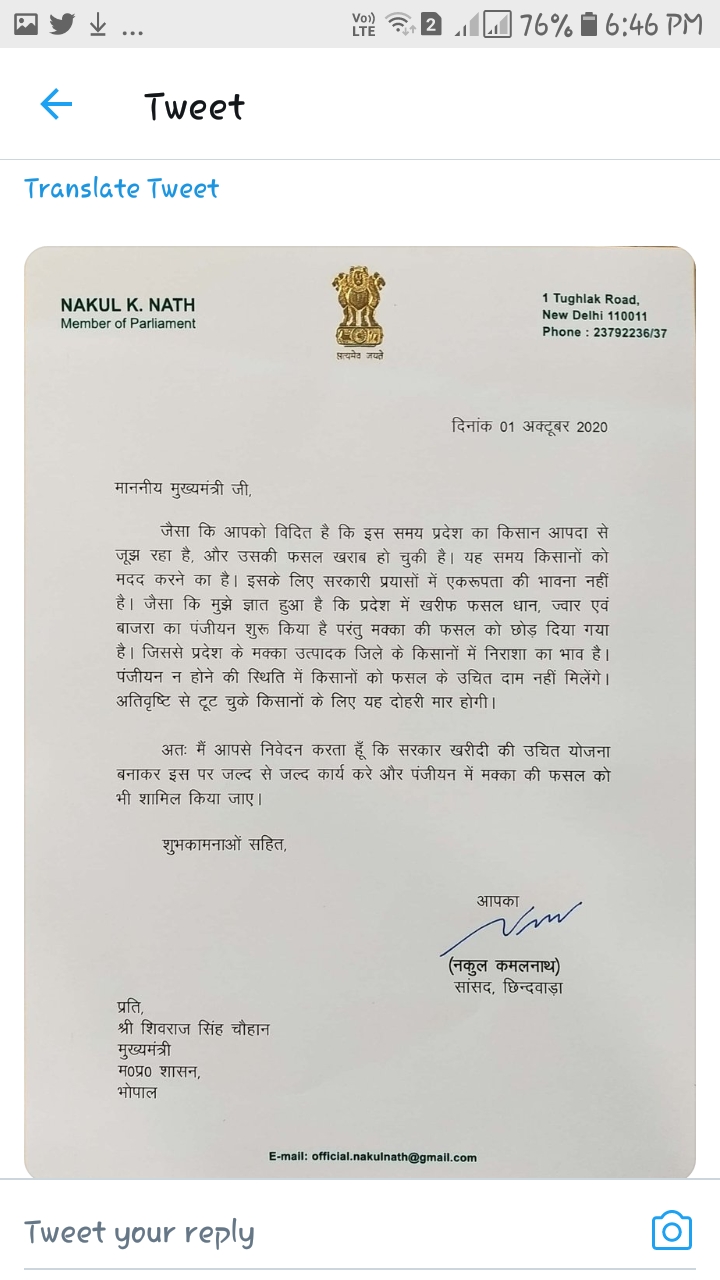 मक्के की फसल को खरीफ फसल में खरीदी में शामिल करने हेतु अपील की