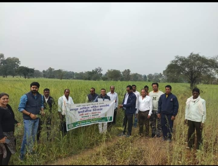 जवाहरलाल नेहरू कृषि विश्वविद्यालय द्वारा संचालित कृषि विज्ञान केंद्र छिन्दवाड़ा द्वारा राष्ट्रीय खाद्य सुरक्षा मिशन के अंतर्गत तिलहन फसल का रकबा बढ़ाने के लिये आज मिशन के अंतर्गत संचालित समूह पंक्ति प्रदर्शन में ग्राम खैरवाड़ा में सरसों का प्रक्षेत्र दिवस मनाया गया।