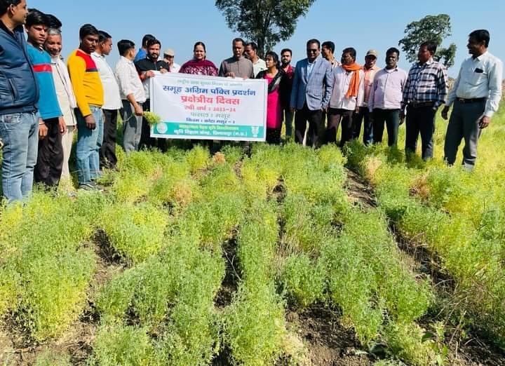 कृषि विज्ञान केंद्र द्वारा ग्राम आमाबोह में मनाया गया मसूर फसल का प्रक्षेत्र दिवस ================================================= कृषि विज्ञान केंद्र छिन्दवाड़ा द्वारा राष्ट्रीय खाद्य सुरक्षा मिशन के अन्तर्गत दलहन फसल का रकबा बढ़ाने के लिये संचालित समूह अग्रिम पंक्ति प्रदर्शन में जिले के विकासखंड चौरई के ग्राम आमाबोह के कृषक श्री मक़सूद ख़ान के कृषि प्रक्षेत्र पर मसूर की क़िस्म कोटा मसूर-2 का प्रक्षेत्र दिवस मनाया गया। इस कार्यक्रम में ग्राम आमाबोह व आसपास के ग्रामों के प्रगतिशील कृषकों ने सहभागिता की। कार्यक्रम में कृषि विज्ञान केंद्र के प्रभारी वरिष्ठ वैज्ञानिक एवं प्रमुख डॉ.डी.सी.श्रीवास्तव ने कहा कि कृषक ज़िले में दलहनी फ़सल मसूर का रक़बा बढ़ायें और फ़सलों में जैव उर्वरकों का ही उपयोग करें । वैज्ञानिक श्रीमती रिया ठाकुर ने प्राकृतिक खेती विषय पर कृषकों से चर्चा की। केंद्र की पादप प्रजनक विशेषज्ञ श्रीमती चंचल भार्गव ने मसूर की उन्नत नवीन तकनीक के बारे में कृषकों को जानकारी दी। विकासखंड के वरिष्ठ कृषि विकास अधिकारी श्री उमेश पाटिल ने कृषि विभाग में संचालित योजनाओं की जानकारी कृषकों को प्रदान की। कार्यक्रम में ग्राम के सरपंच एवं ग्रामीण कृषि विस्तार अधिकारी श्री बी.एल.सरेयाम ने भी भाग लिया।