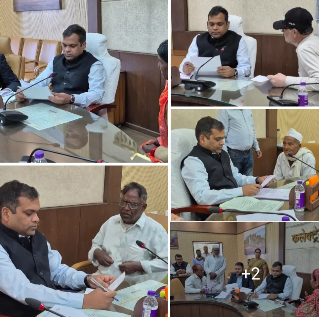 राज्य शासन के जनसुनवाई कार्यक्रम के अंतर्गत प्रति सप्ताह मंगलवार को आम नागरिकों की समस्याओं की सुनवाई की जाती है और संबंधित विभाग के अधिकारियों से इन समस्याओं का त्वरित निराकरण कराया जाता है । कलेक्टर श्री हरेंद्र नारायन ने आज कलेक्टर कार्यालय के सभाकक्ष में आयोजित जनसुनवाई में 140 आवेदकों की समस्यायें सुनी । इस दौरान जिले के शहरी और ग्रामीण, दूरस्थ अंचलों से आये आवेदकों ने उपस्थित होकर अपनी समस्याओं के निराकरण के लिये आवेदन प्रस्तुत किये । जनसुनवाई में मुख्य रूप से ज़मीन का सीमांकन करने, प्रधानमंत्री आवास योजना का लाभ दिलाने, भू-अधिकार पट्टा दिलाने, जन्म व मृत्यु प्रमाण पत्र बनाने, जाति प्रमाण पत्र बनाने, खसरा-नक्शा दुरूस्त कराने आदि से संबंधित आवेदन प्राप्त हुये। जनसुनवाई के दौरान आवेदकों के बैठने की व्यवस्था भी की गई थी।