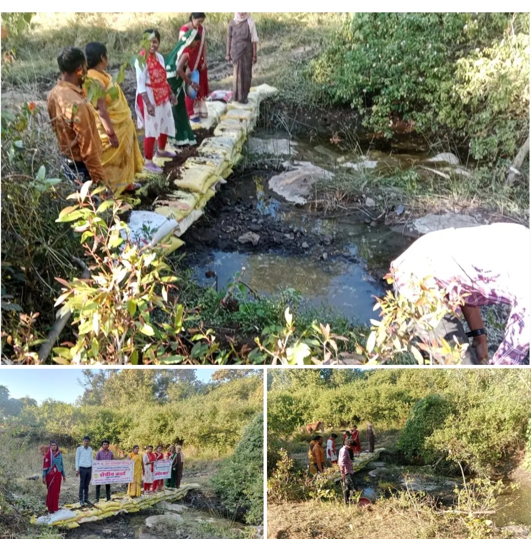 म.प्र. जन अभियान परिषद भोपाल के निर्देशानुसार जिला कलेक्टर श्री हरेंद्र नारायन के मार्गदर्शन में जिला समन्वयक श्री अखिलेश जैन तथा तामिया विकासखंड समन्वयक श्रीमती ललिता कुशरे के नेतृत्व एवं परामर्शदाता श्री महेंद्र यादव की उपस्थिति में जल संचय अभियान के अंतर्गत विकासखण्ड तामिया के सेक्टर क्रंमांक-5 ग्राम पंचायत खिरेटीमाल में चयनित नवांकुर श्री दादाजी जन जाग्रती कल्याण समिति एवं ग्राम विकास प्रस्फुटन समिति के द्वारा बजरंगवली नाला में बोरी बंधान किया गया।
