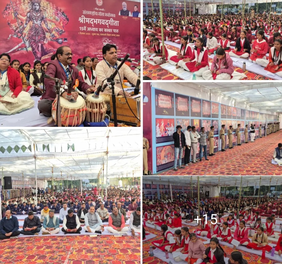 अंतरराष्ट्रीय गीता महोत्सव के अंतर्गत सोमवार को मार्गशीर्ष शुक्ल पक्ष मोक्षदा एकादशी के अवसर पर गीता जयंती महोत्सव का जिला स्तरीय कार्यक्रम पीएम श्री महारानी लक्ष्मीबाई कन्या उच्चतर माध्यमिक विद्यालय छिंदवाड़ा में श्रद्धा और उत्साह के साथ संपन्न हुआ। मध्यप्रदेश शासन एवं विश्व गीता प्रतिष्ठानम के संयुक्त तत्वाधान में आयोजित इस कार्यक्रम की शुरुआत कार्यक्रम के मुख्य अतिथि नगर निगम छिंदवाड़ा के महापौर श्री विक्रम सिंह अहके व श्री शेषराव यादव द्वारा शंखनाद के बीच मां सरस्वती के पूजन अर्चन से की गई।