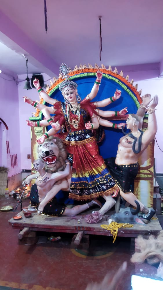 टेटिया बंबर में दुर्गा प्रतिमा को दिया जा रहा है अंतिम रूप