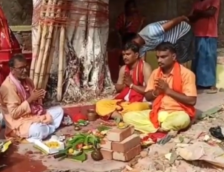 शनिदेव और हनुमान मंदिर निर्माण को लेकर तैयारियां की गई शुरू किया गया भूमि पूजन