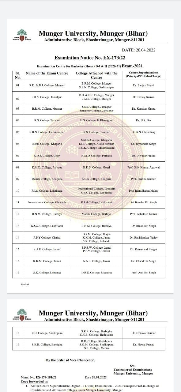 आगामी 20 मई से स्नातक पार्ट वन पार्ट 2 की परीक्षा आयोजित कराएगा मुंगेर विश्वविद्यालय